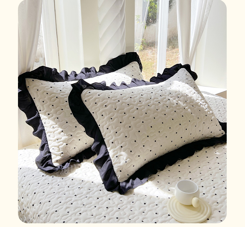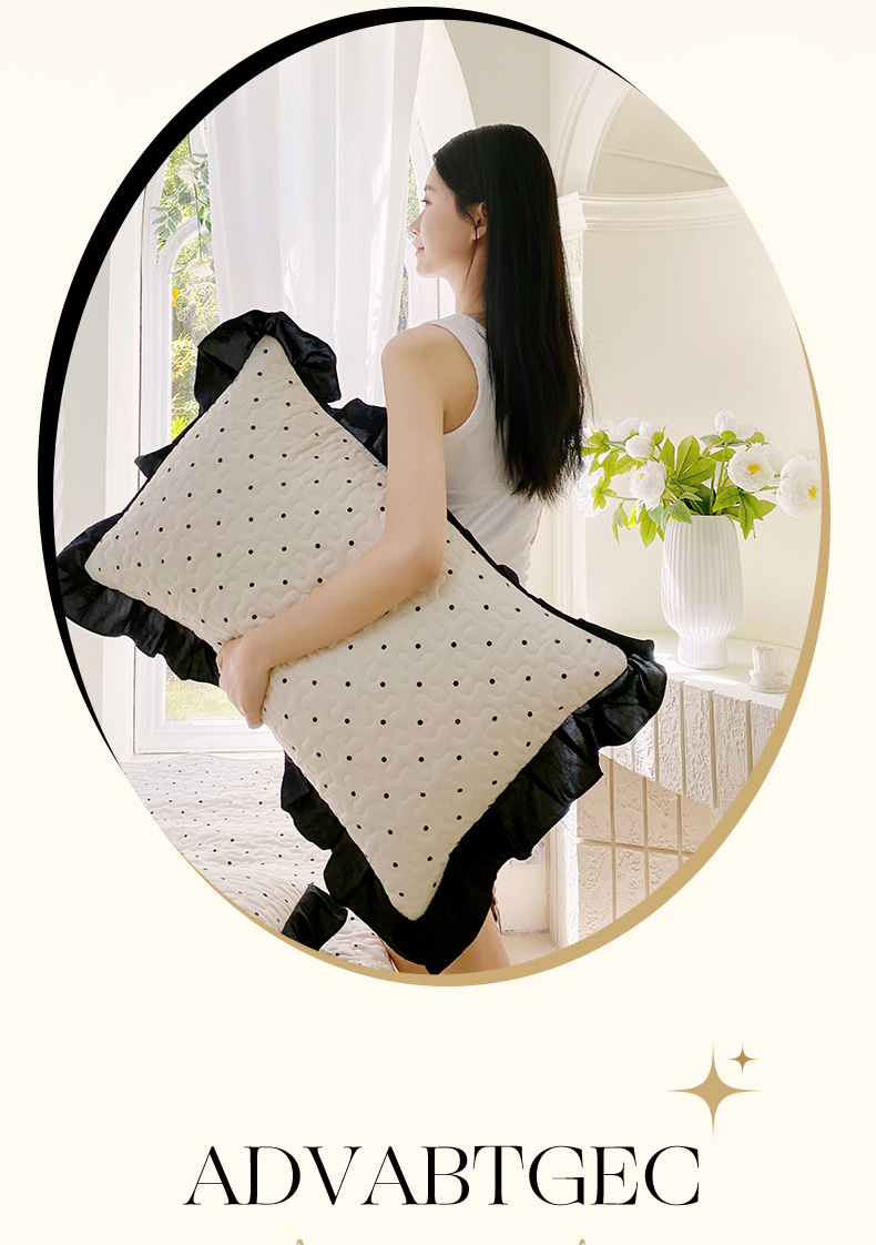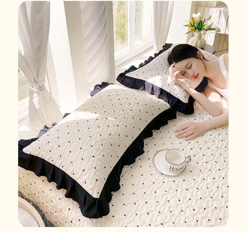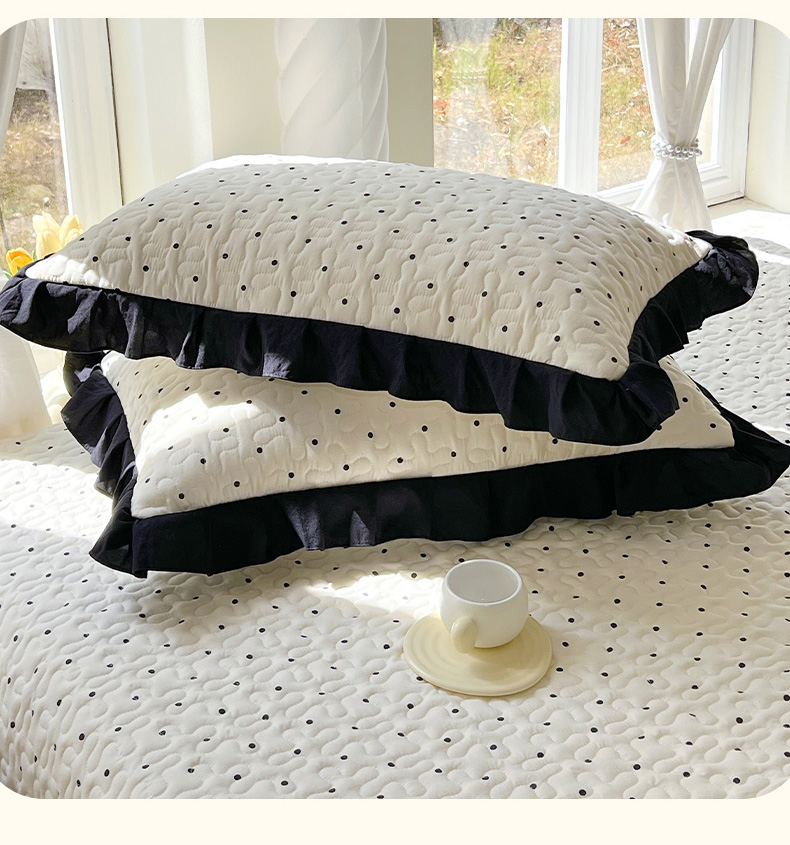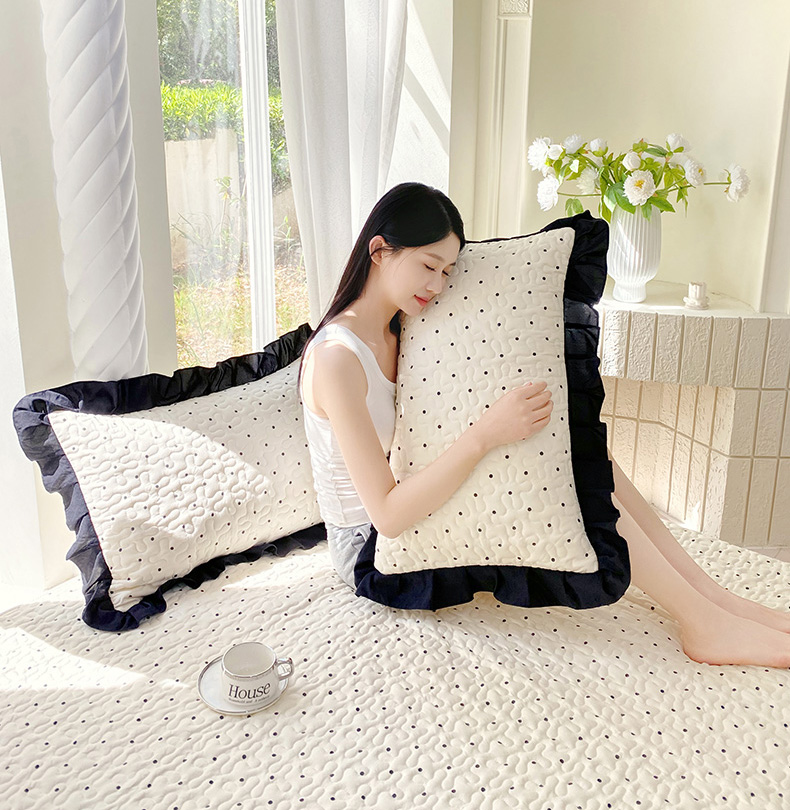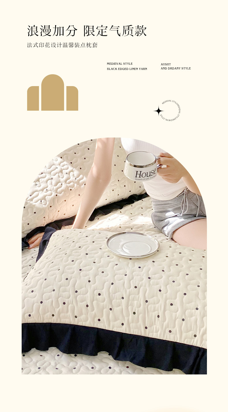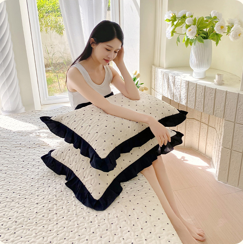 雨彤家纺2025新款赫本风水洗棉夹棉花边枕套 小波点