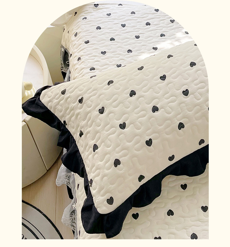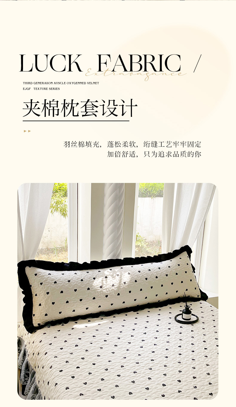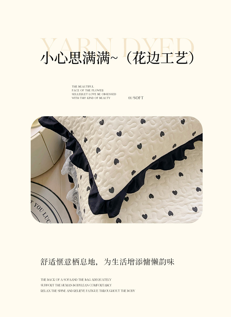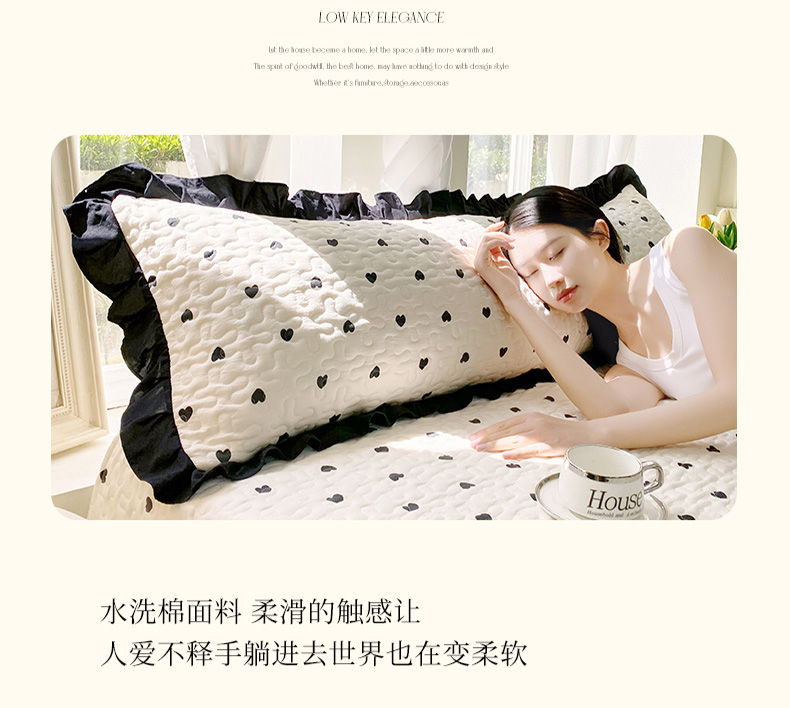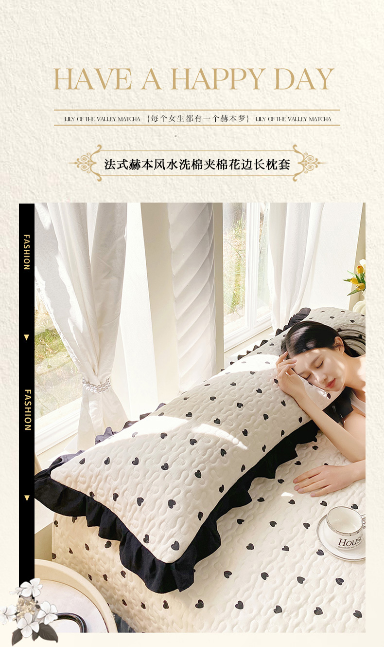 商品名称:雨彤家纺2025新款赫本风水洗棉花边夹棉枕套双人款 爱心