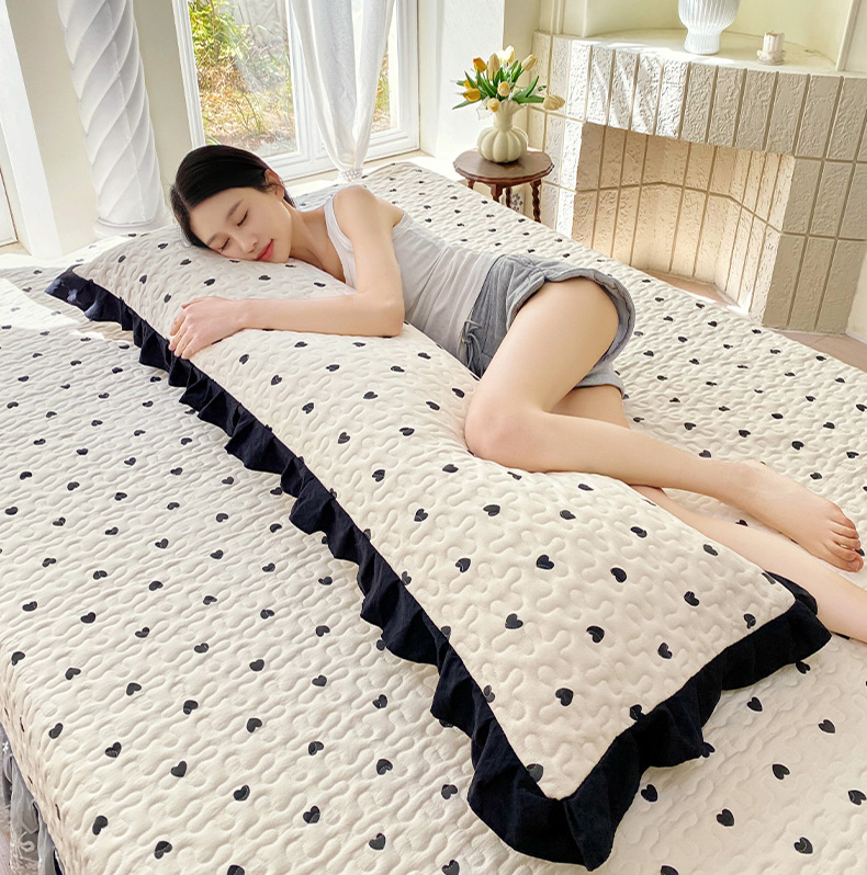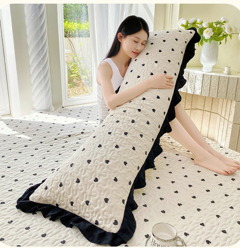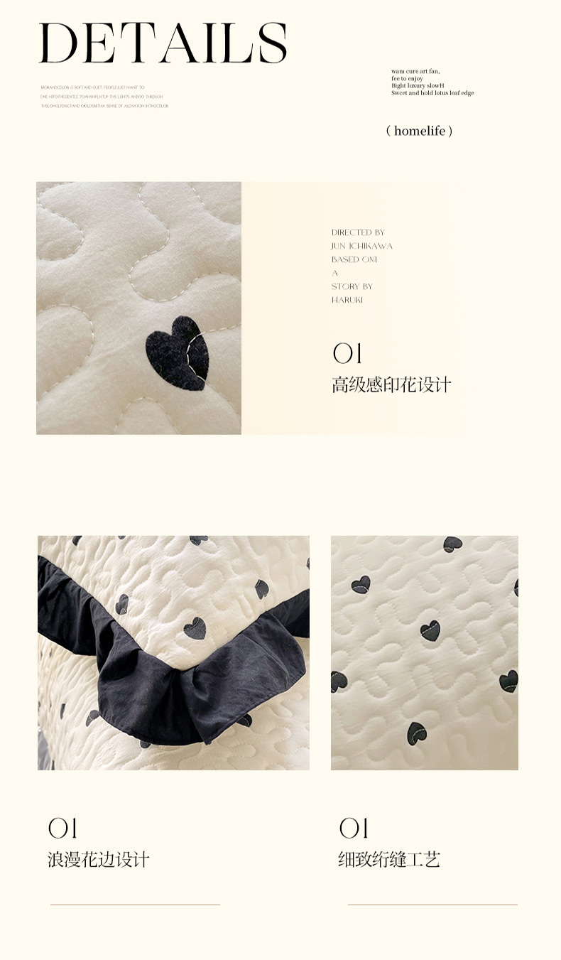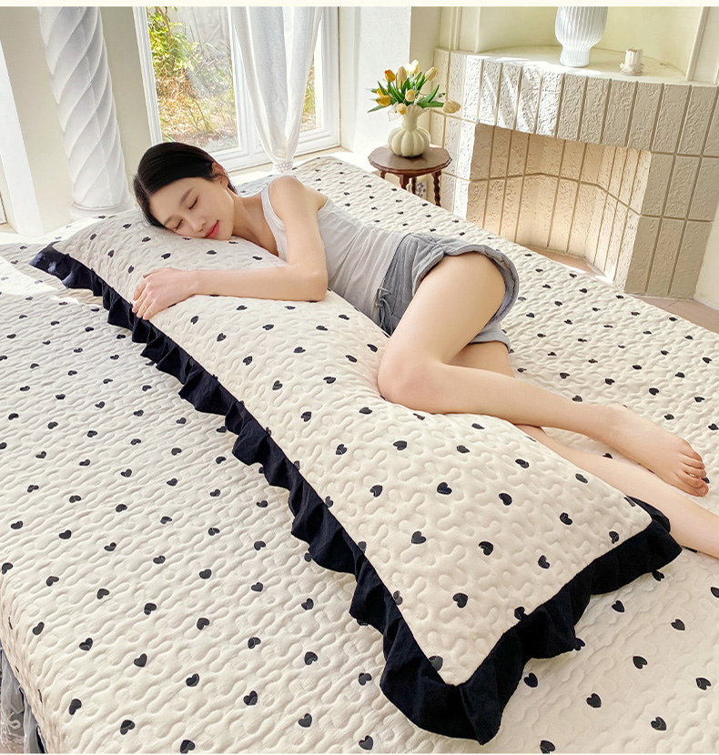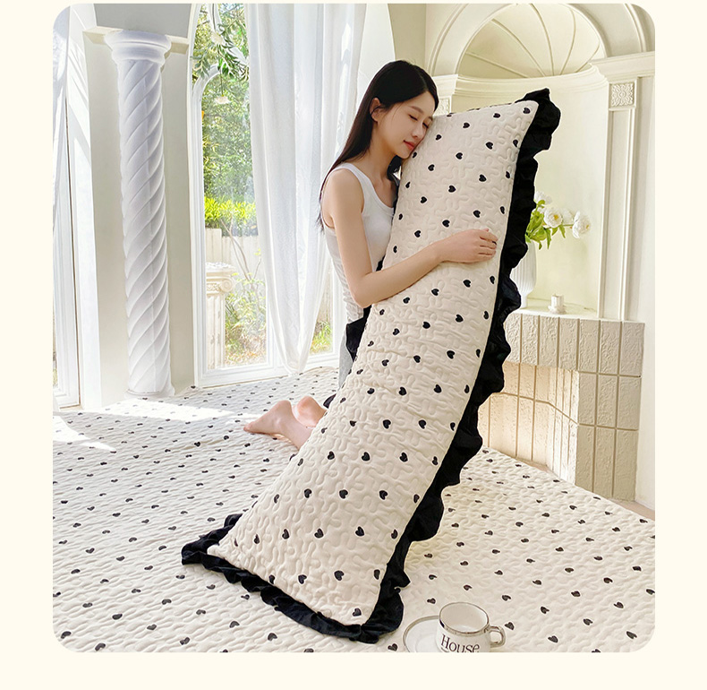 商品名称:雨彤家纺2025新款赫本风水洗棉花边夹棉枕套双人款 爱心