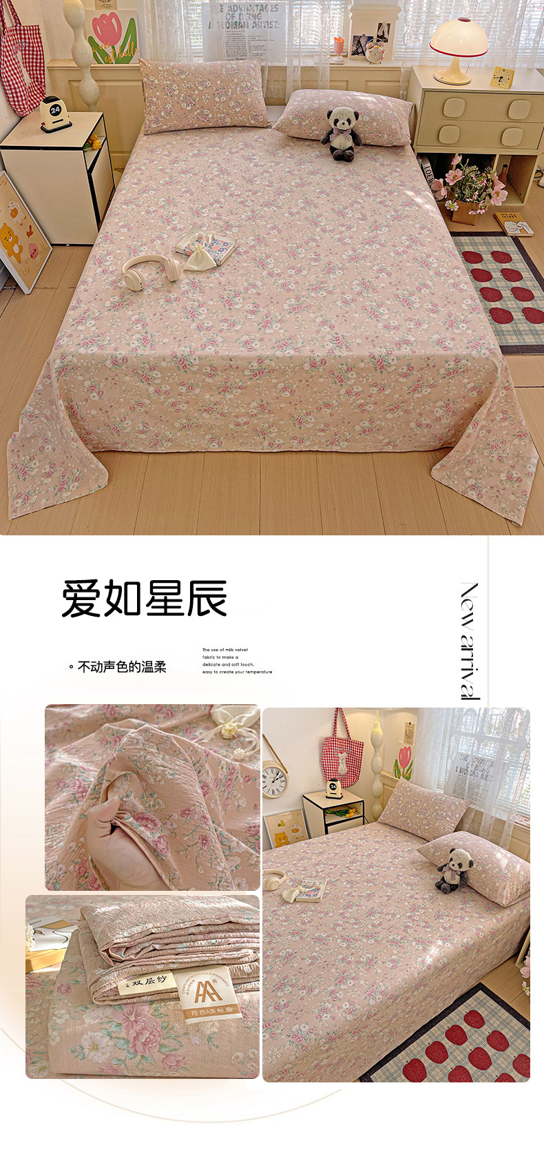 • 91家纺网 家纺一手货源 找家纺 初念 2025春夏新款云感纱印花单床单 爱如星辰