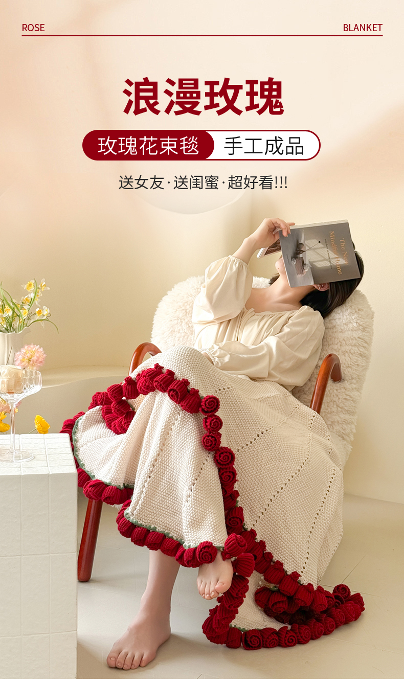 商品名称:(总)丹本家纺 2025春夏新款A类爆款玫瑰花束毯多功能玫瑰花毯车载办公室盖毯毛毯毯子