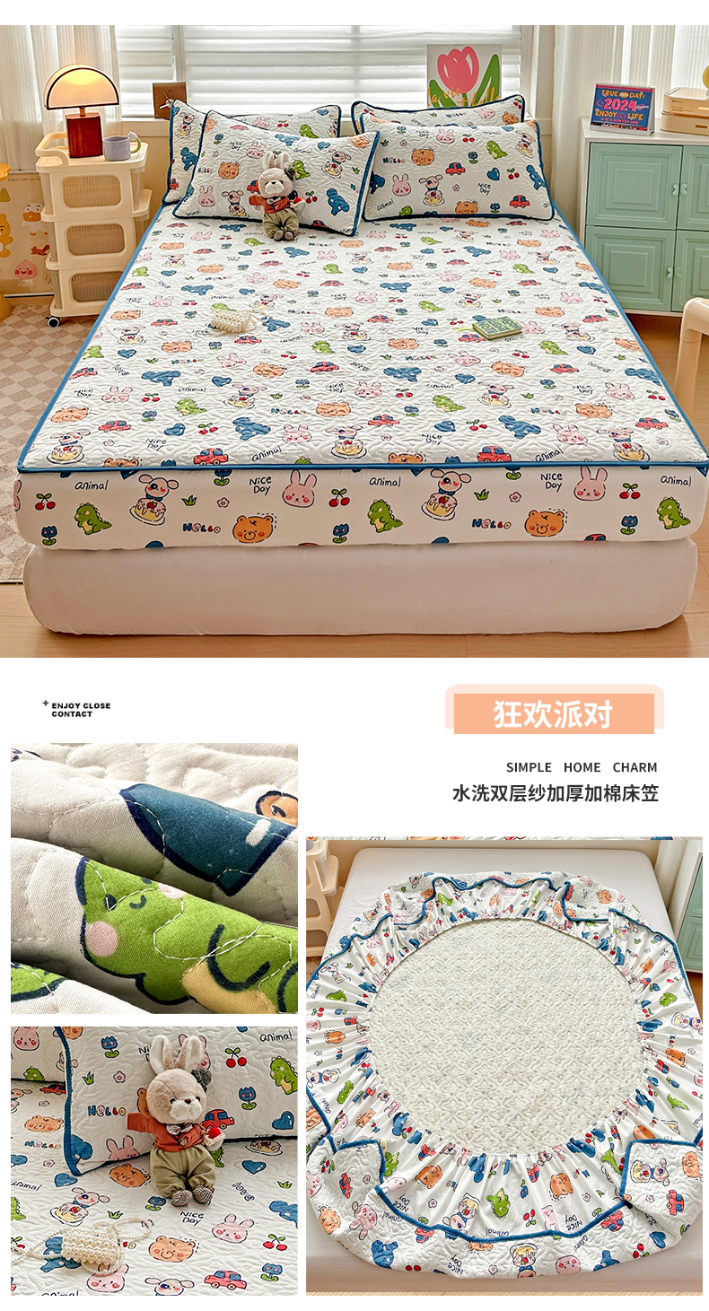 (总)纽缦家纺 2025新款云朵提花双层纱夹棉绗缝床笠,爱如星辰,暗恋,波点世界,大吉大厘,海像森林,恋如青柠香,落日暮年绿,猫猫晚宴,猫咪恋人,玫瑰哒,蜜糖之恋,葡萄七分甜,奇妙小熊米,倾心紫,森林野园,他和她的兔,兔子的欢喜,相思蓝,小豹纹,小猫时光蓝,小鸥鸥,有草莓的地方