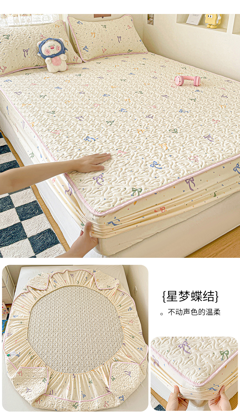 纽缦家纺 2025春夏新款夹棉床笠单床笠 星蝶物语