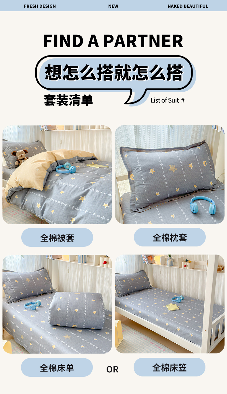 商品名称:拾物记 2025新款A类棉学生印花三件套 星月轨迹