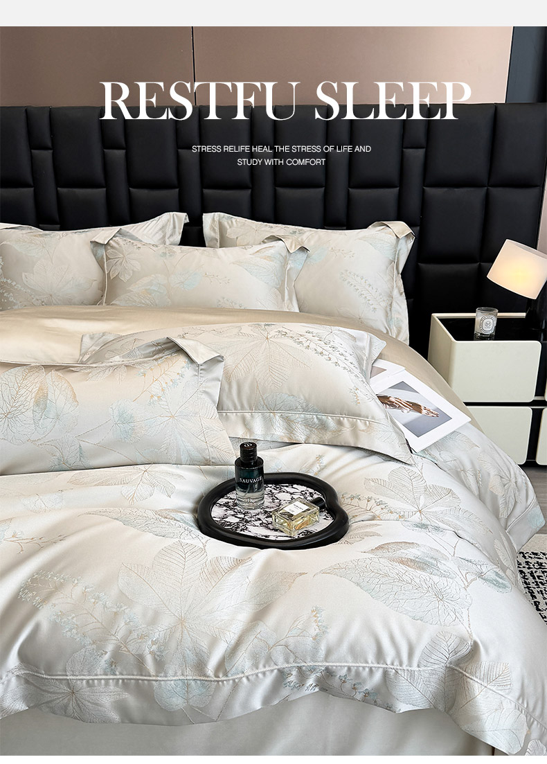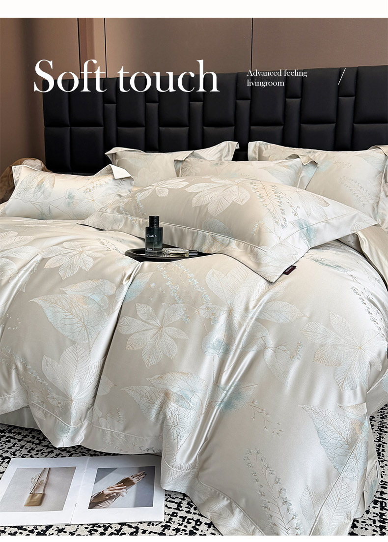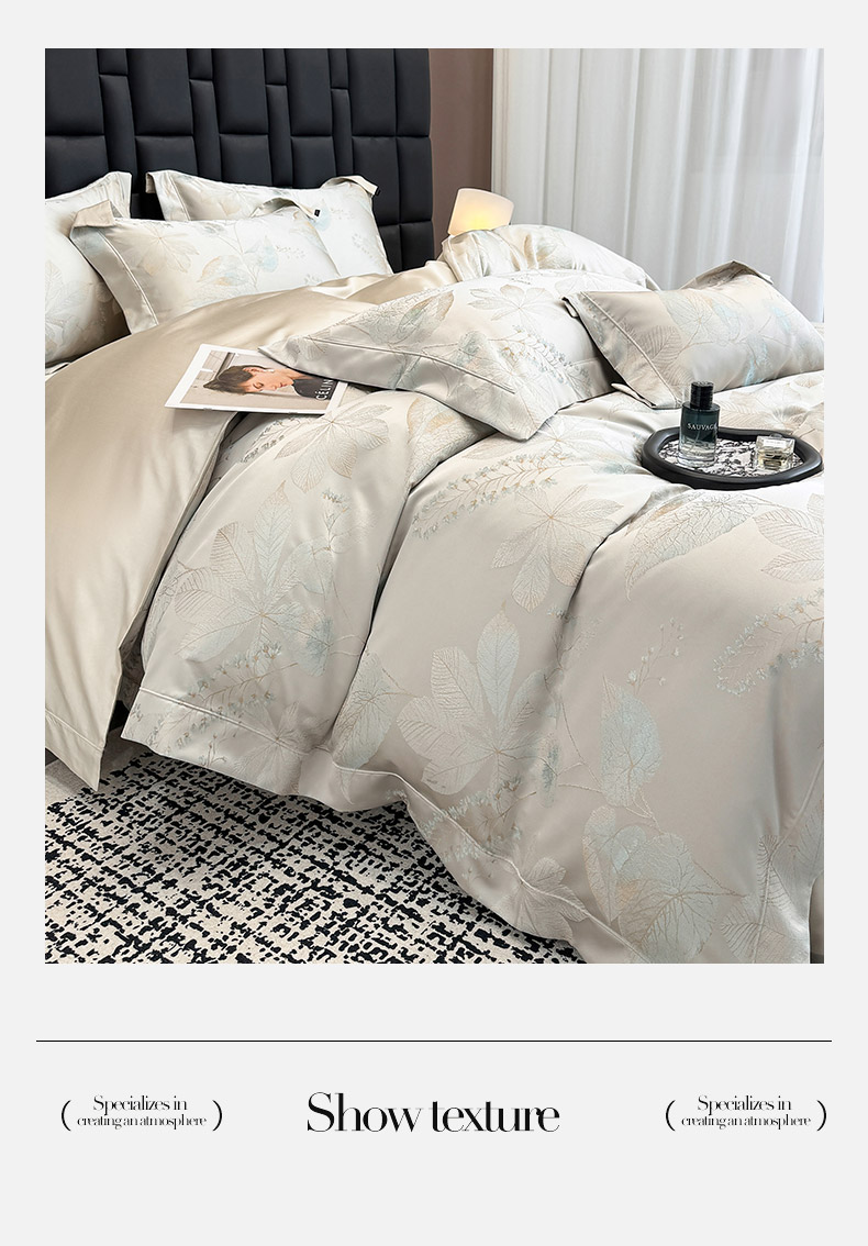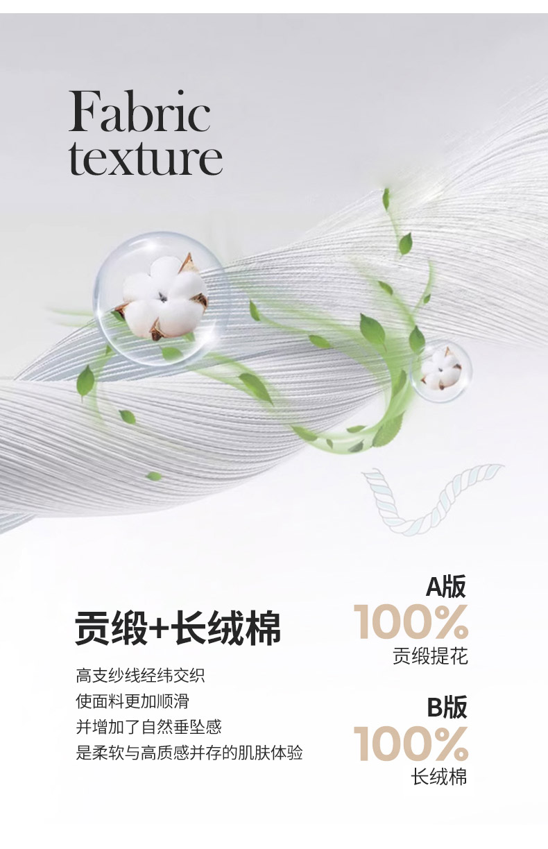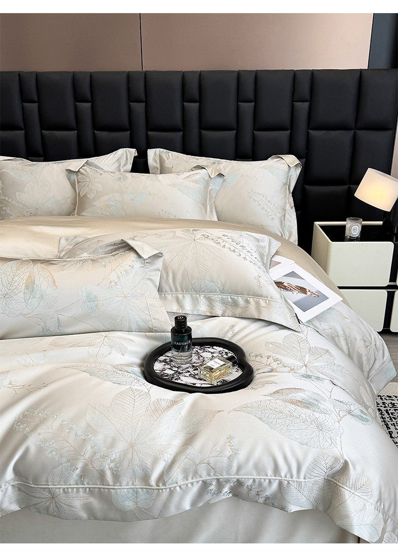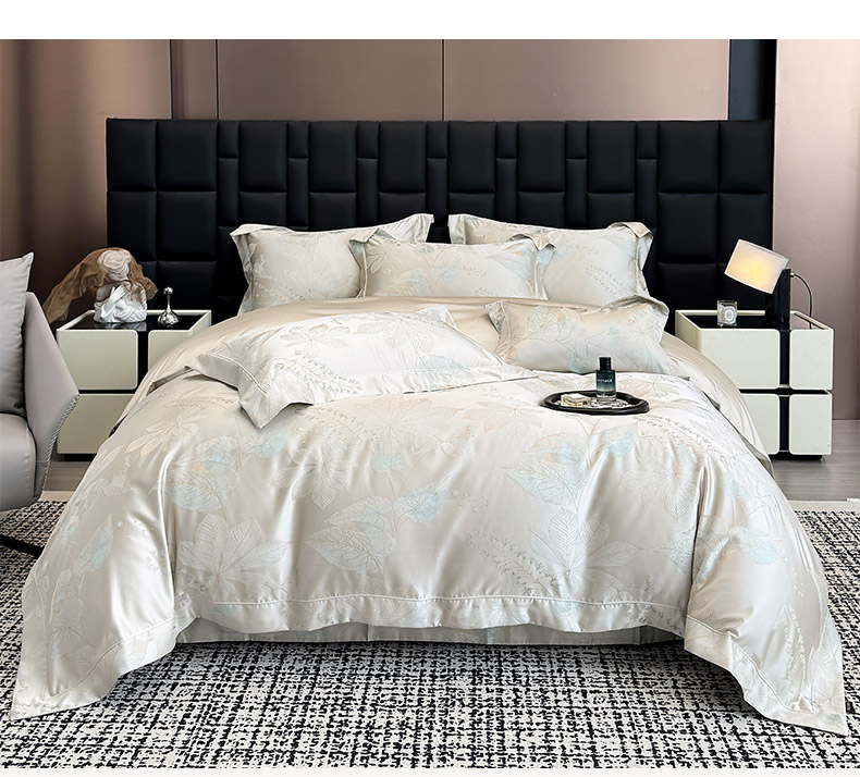 商品名称:2025新款高端A类贡缎长绒棉四件套全棉纯棉提花被套纯色床单床笠轻奢风四季适用床上用品 岚亭-杏叶白