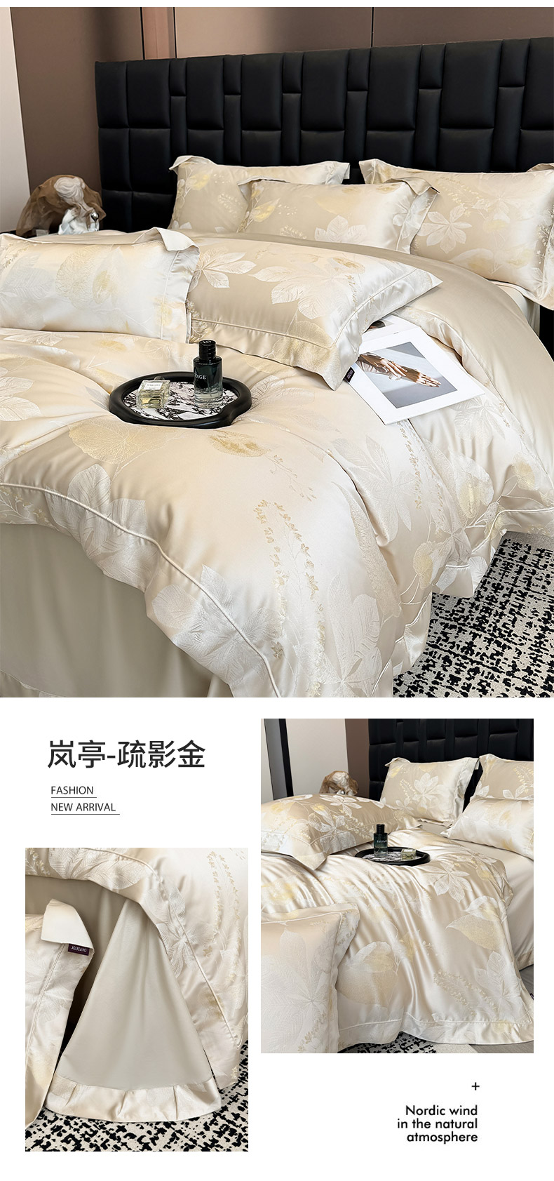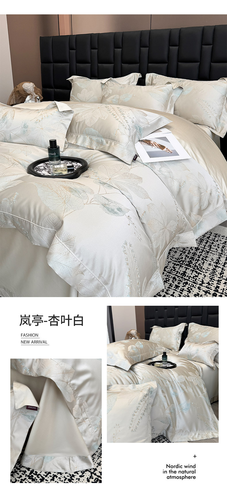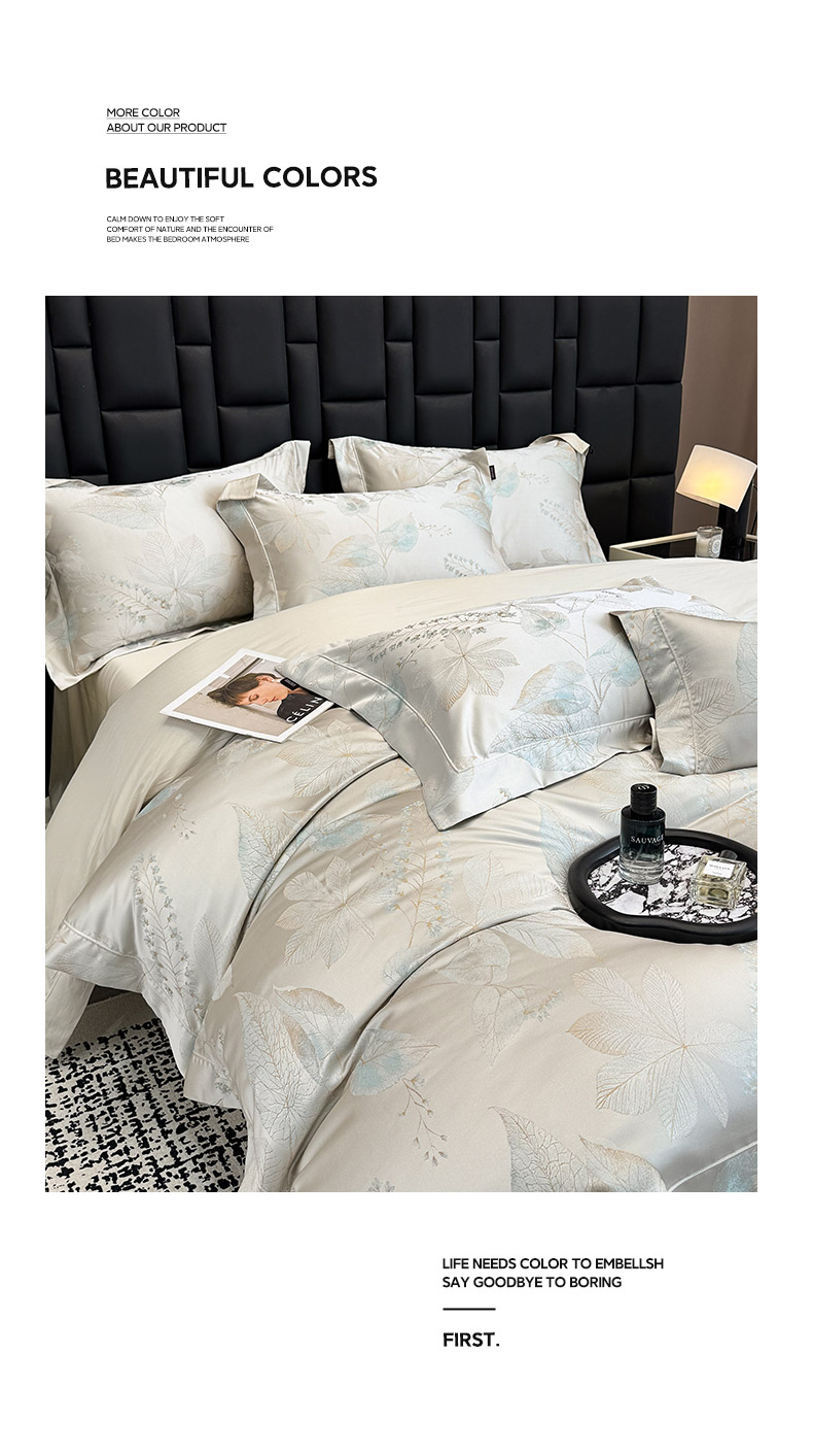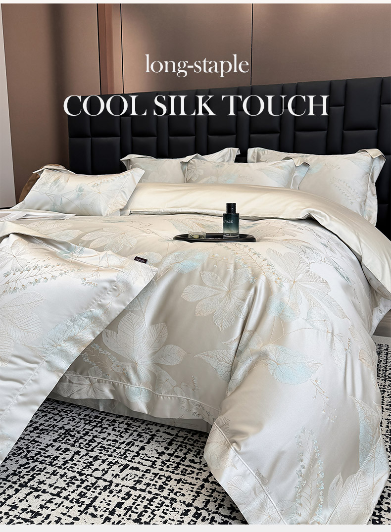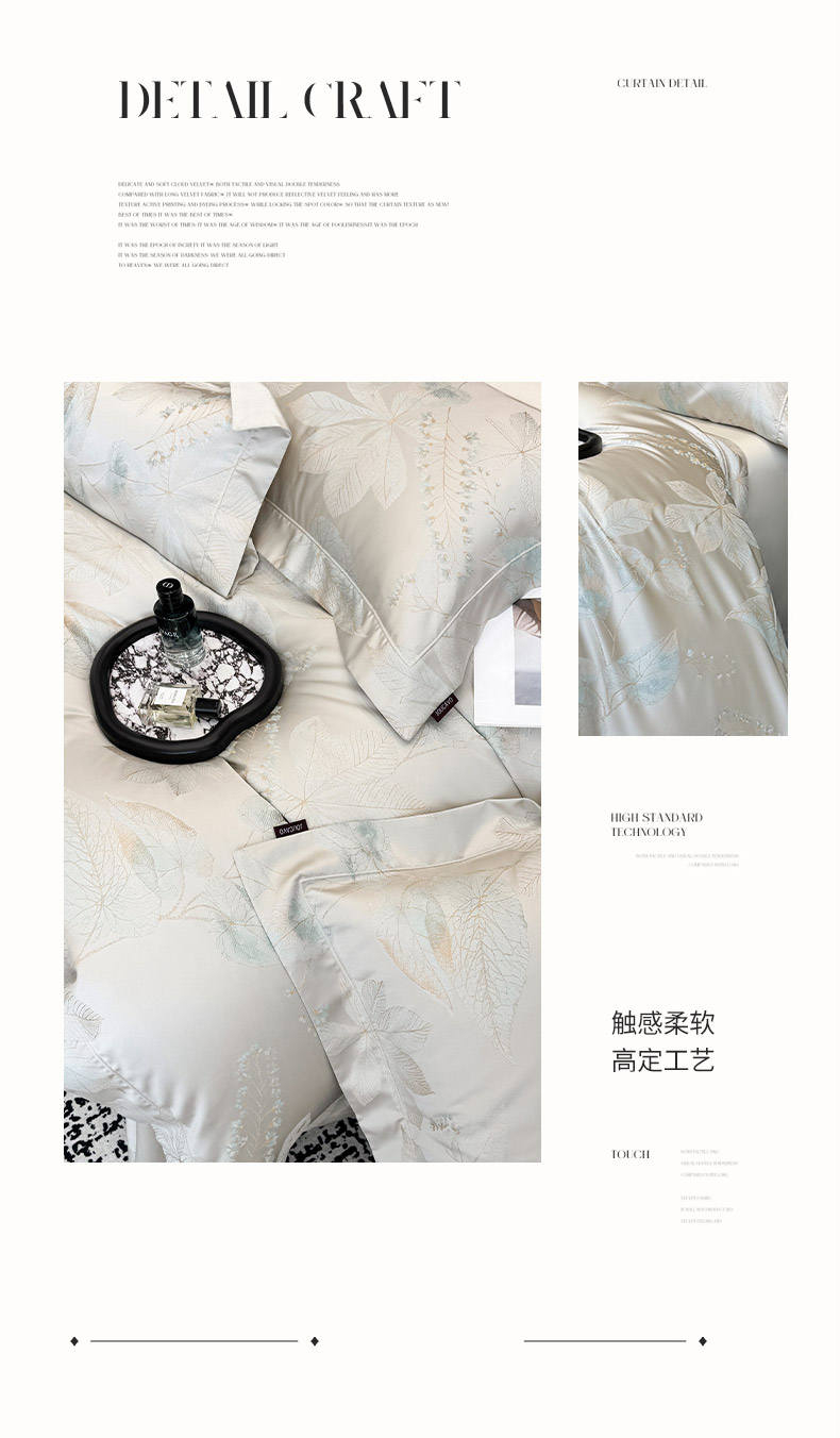 商品名称:2025新款高端A类贡缎长绒棉四件套全棉纯棉提花被套纯色床单床笠轻奢风四季适用床上用品 岚亭-杏叶白