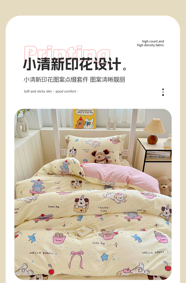 (总)春雨家居 2026新款全棉纯棉花ins减龄可爱小清新四件套(提供买家秀、质检报告、有预留缩水)),贝尔兰-兰,比星邦尼狗,布布迷宫,春漫庭,达乐宝贝,朵唯,芙莉,格子布丁狗,故事小黄花,韩系拼图,旧书折痕-蓝,蓝拼KT-兰,浪漫花园,洛克庄园-绿,萌趣汪汪,暮洛星,奶油凯蒂-兰,奶油羞羞狗,清秋夜曲,秋日确幸-豆沙,苏林-绿,苏糖-粉,夏日花莳,小菠萝,小猫时光-兰,心动庄园,星星童话园-兰,叶语轻喃-绿,玉海棠,芋泥小狗,醉梦惜花