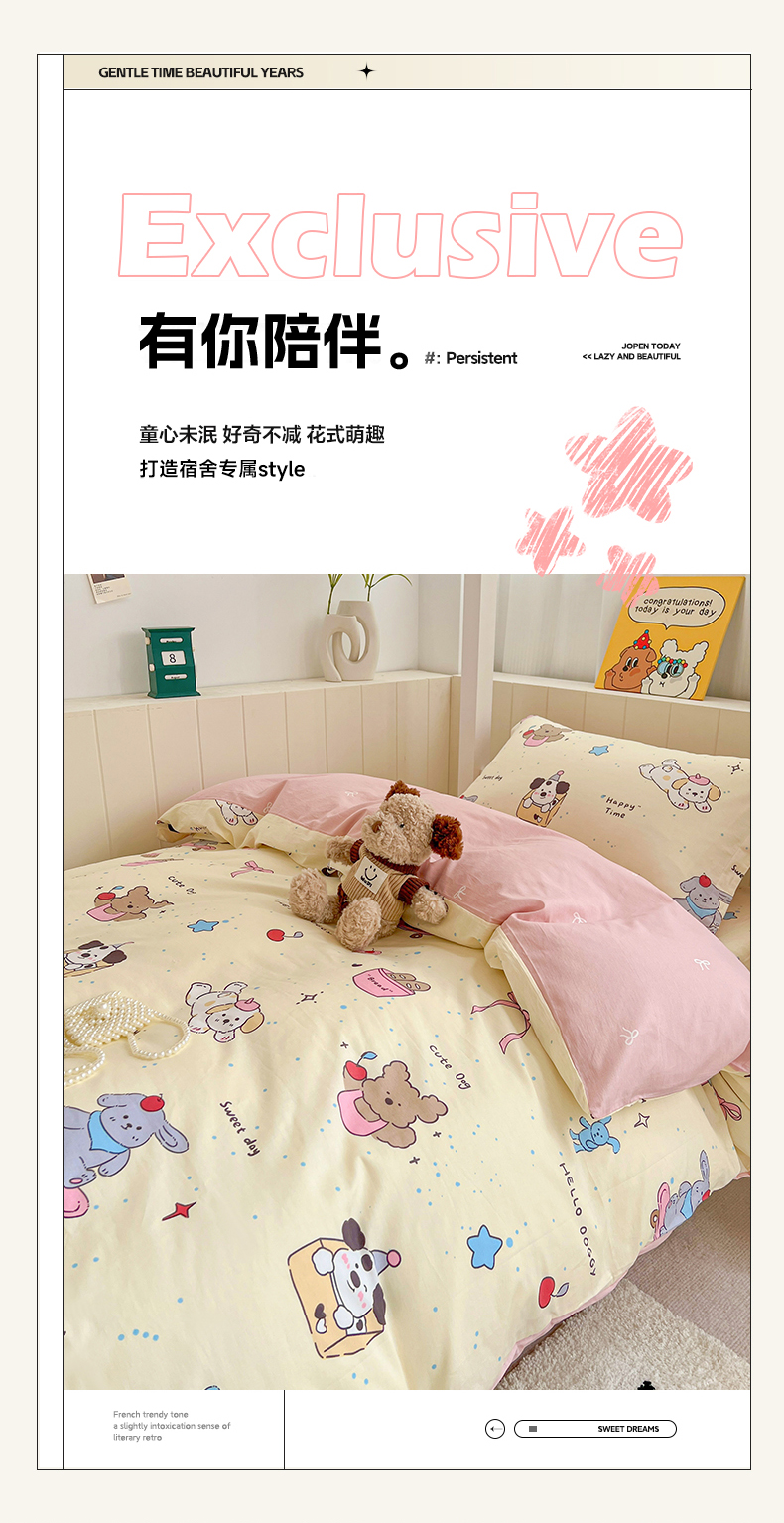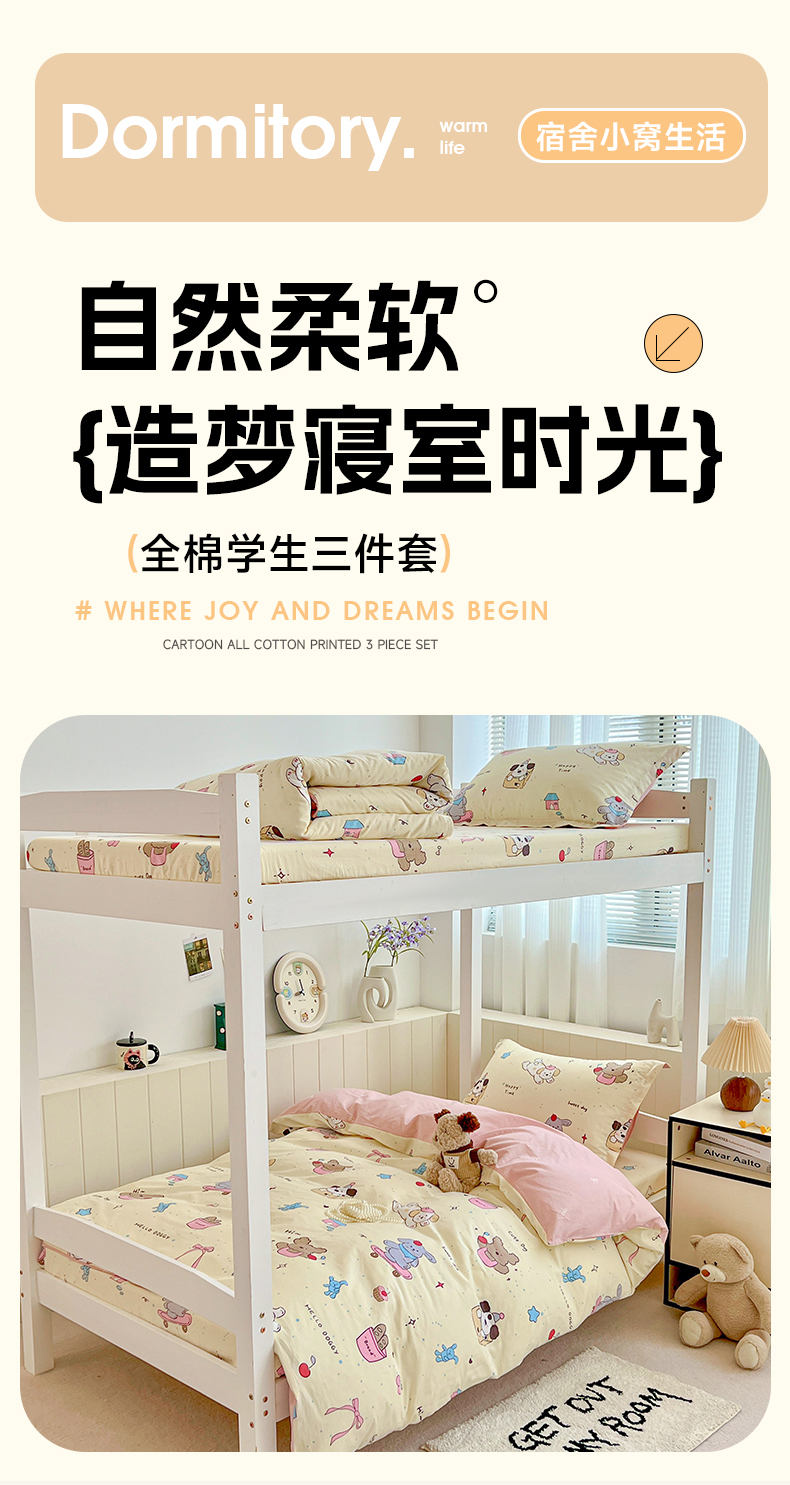 春雨家居 2025新款学生季全棉三件套(预留缩水) 1.可爱颂
