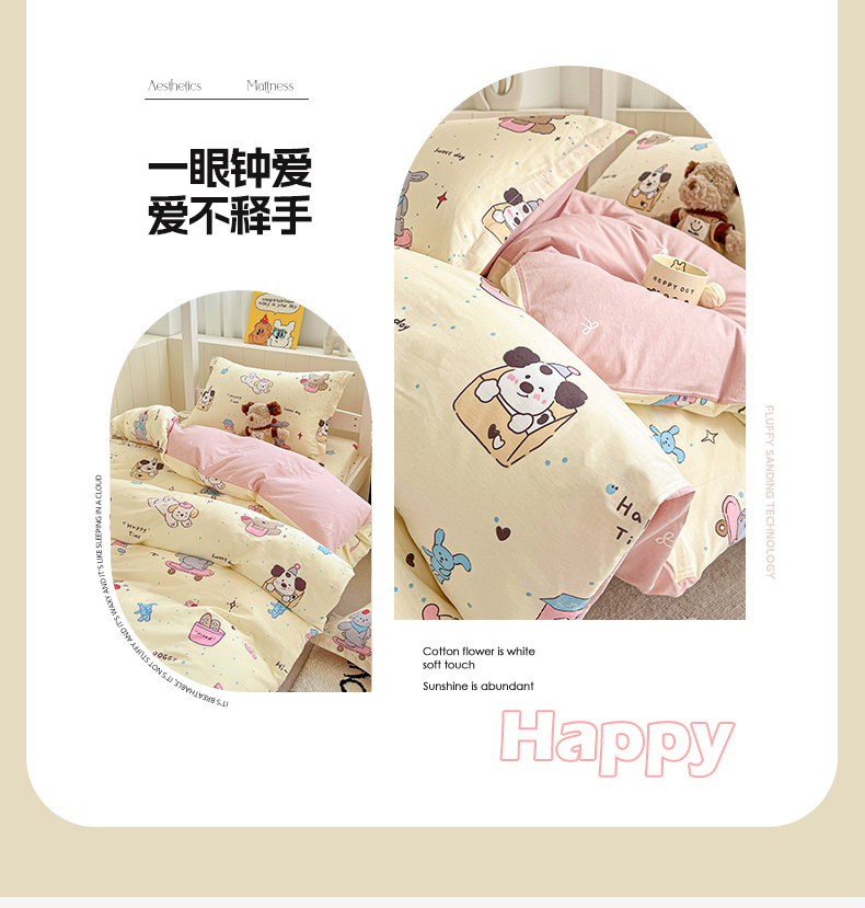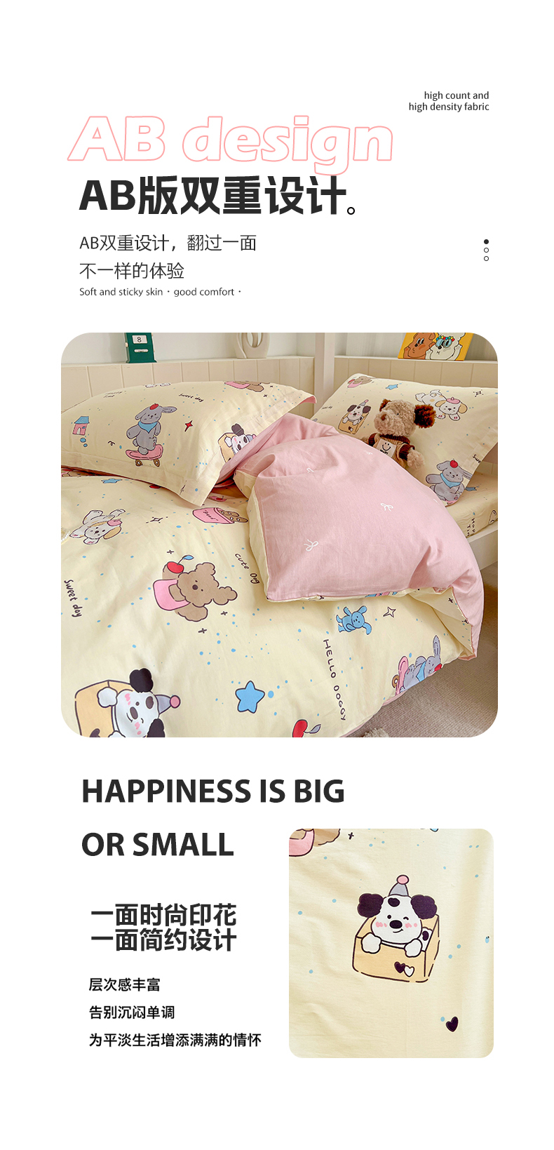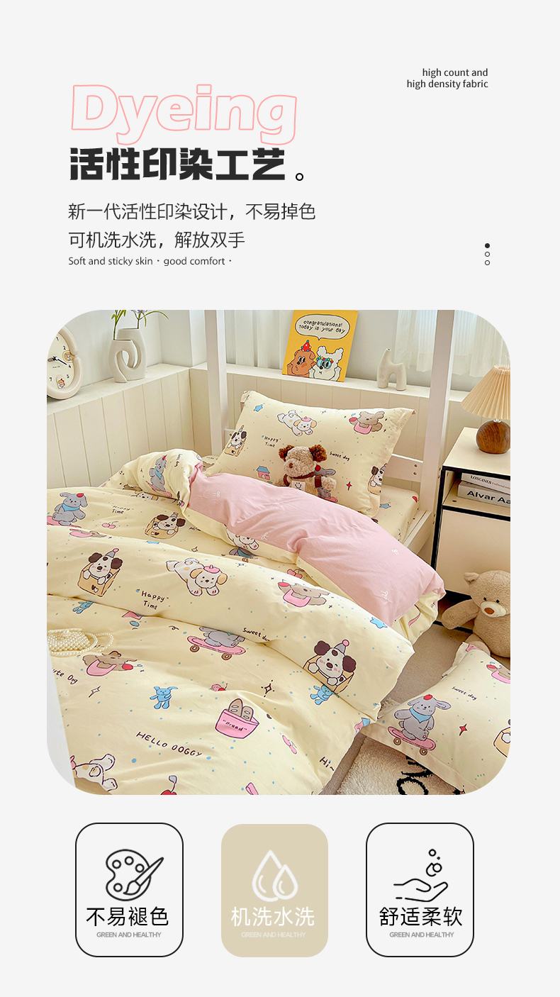 商品名称:春雨家居 2025新款学生季全棉三件套(预留缩水) 1.可爱颂