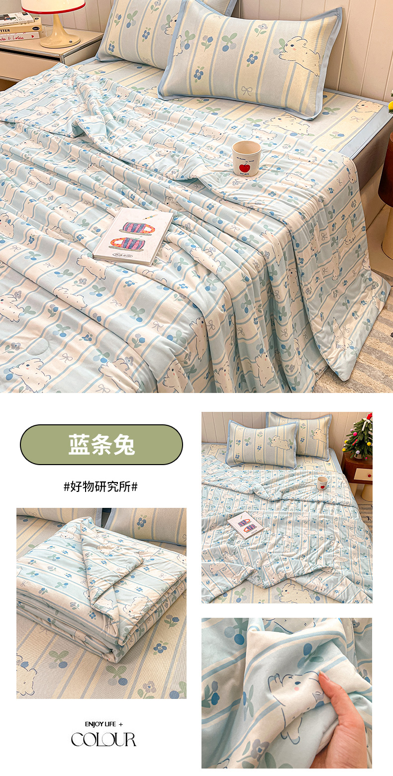 • 91家纺网 家纺一手货源 找家纺 小叮当家纺仓储工厂店 2025新款A类印花冰藤凉席席子针织棉牛奶丝夏被夏凉被空调被四件套 冰藤席-蓝花小熊