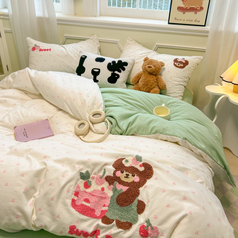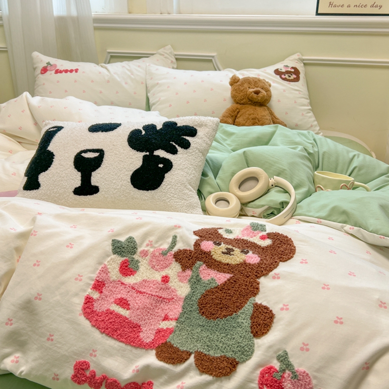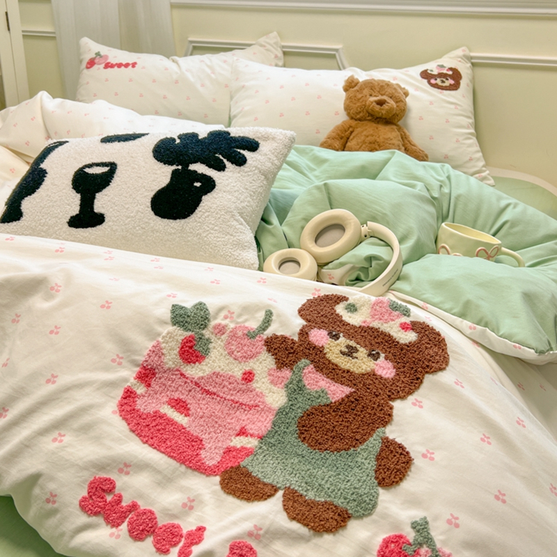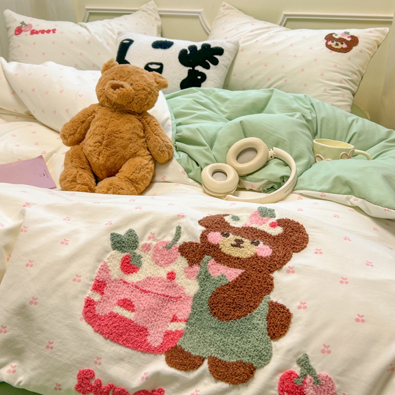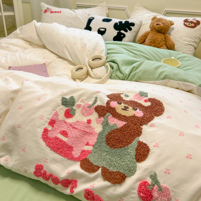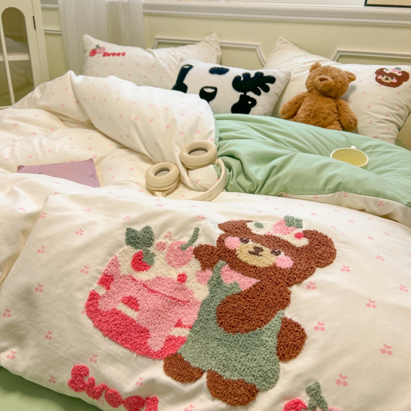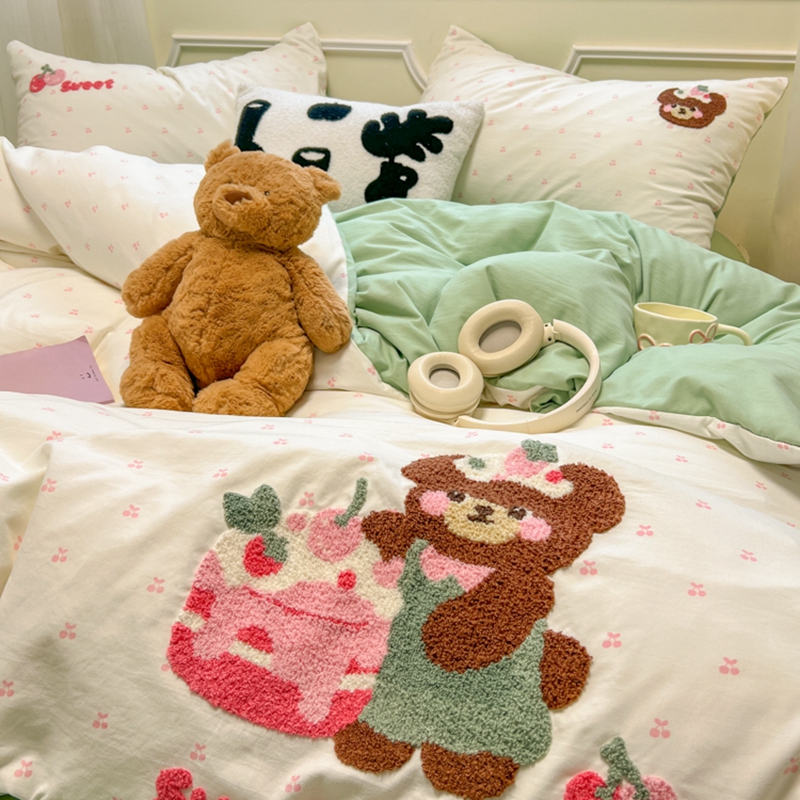 当前位置: 91家纺网 > 商品网购 > 床品套件 > 四件套 > 毛巾绣四件套 > 韩巢家纺 2025新款直播热销款毛巾绣四件套可爱超柔学生季宿舍床上三件套(提供卖家秀) 甜蜜草莓熊