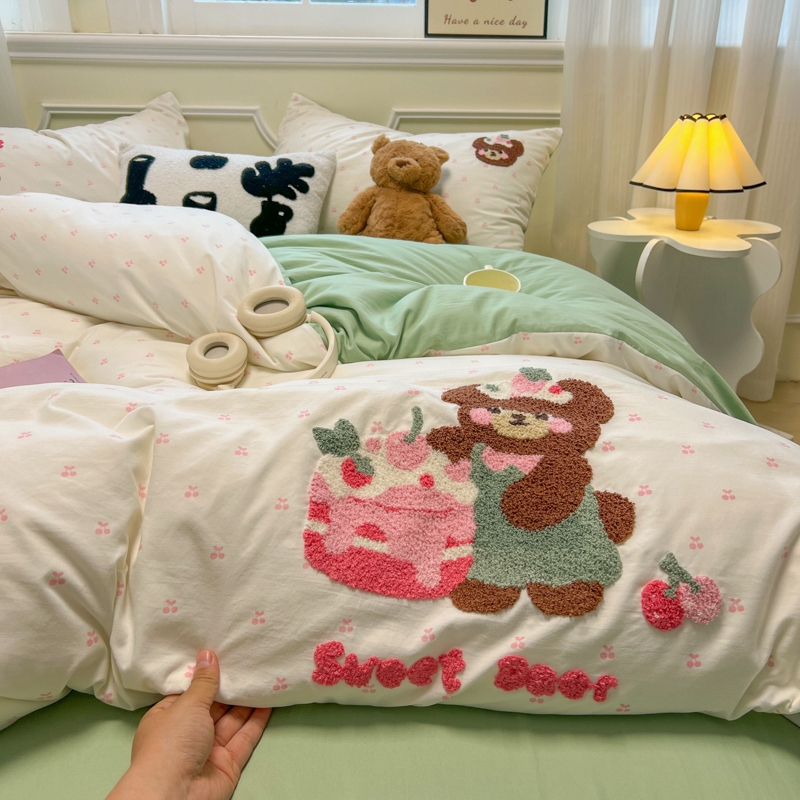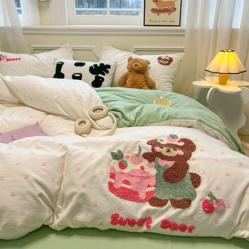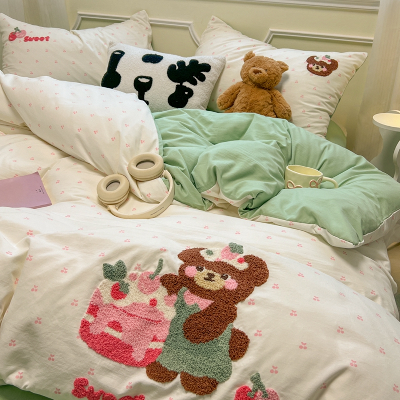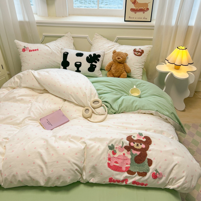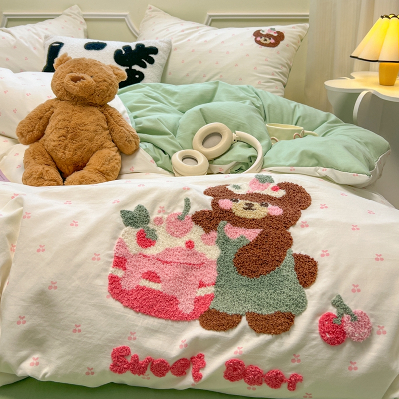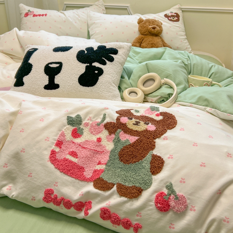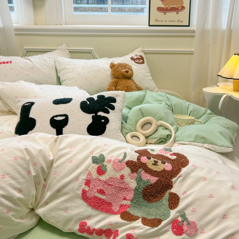 当前位置: 91家纺网 > 商品网购 > 床品套件 > 四件套 > 毛巾绣四件套 > 韩巢家纺 2025新款直播热销款毛巾绣四件套可爱超柔学生季宿舍床上三件套(提供卖家秀) 甜蜜草莓熊