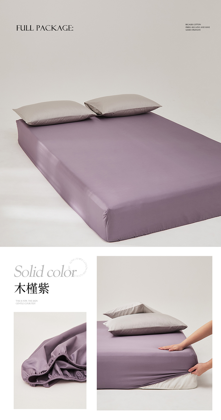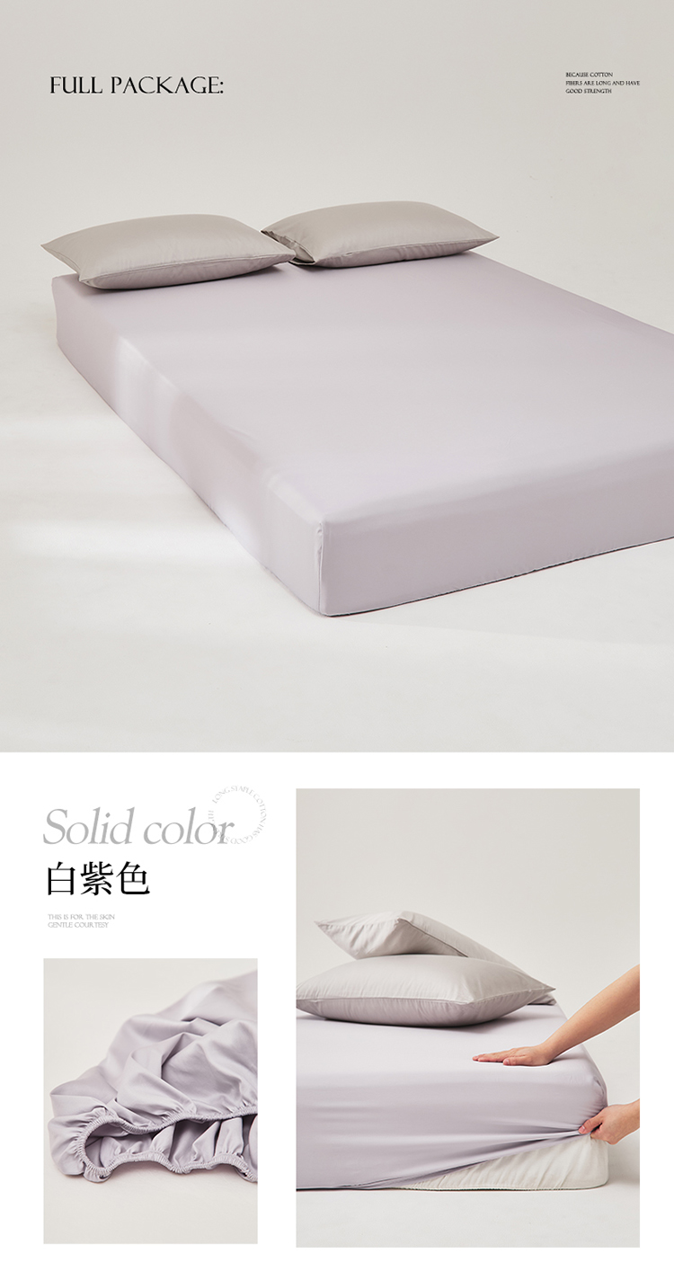 商品名称:有点武功 2025新款100S全棉贡缎长绒棉纯色单床笠轻奢居家学生宿舍纯棉床笠 白紫色