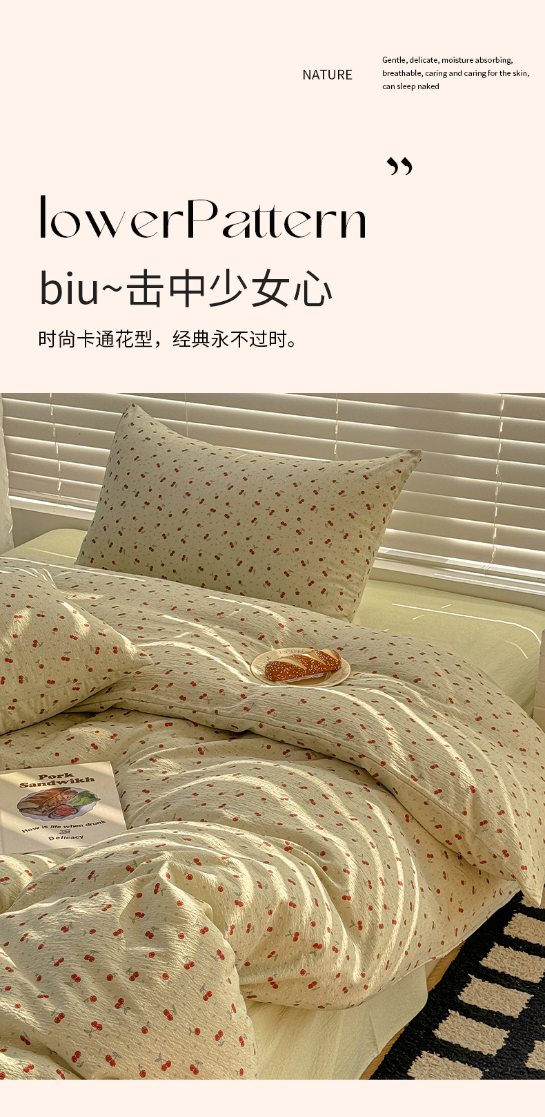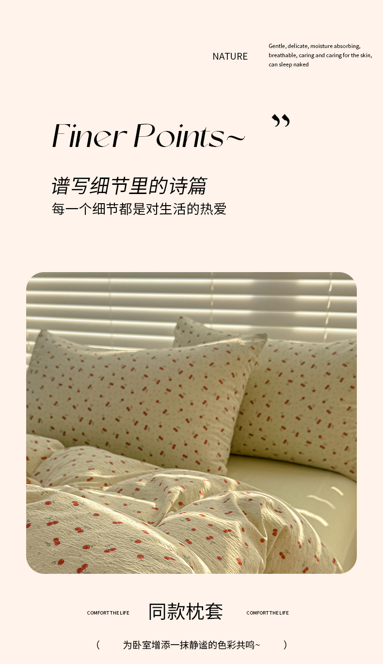 当前位置: 91家纺网 > 商品网购 > 床品套件 > 四件套 > 繁花2025新款学生季第二波木棉水洗棉四件套三件套跑量款 樱桃酱