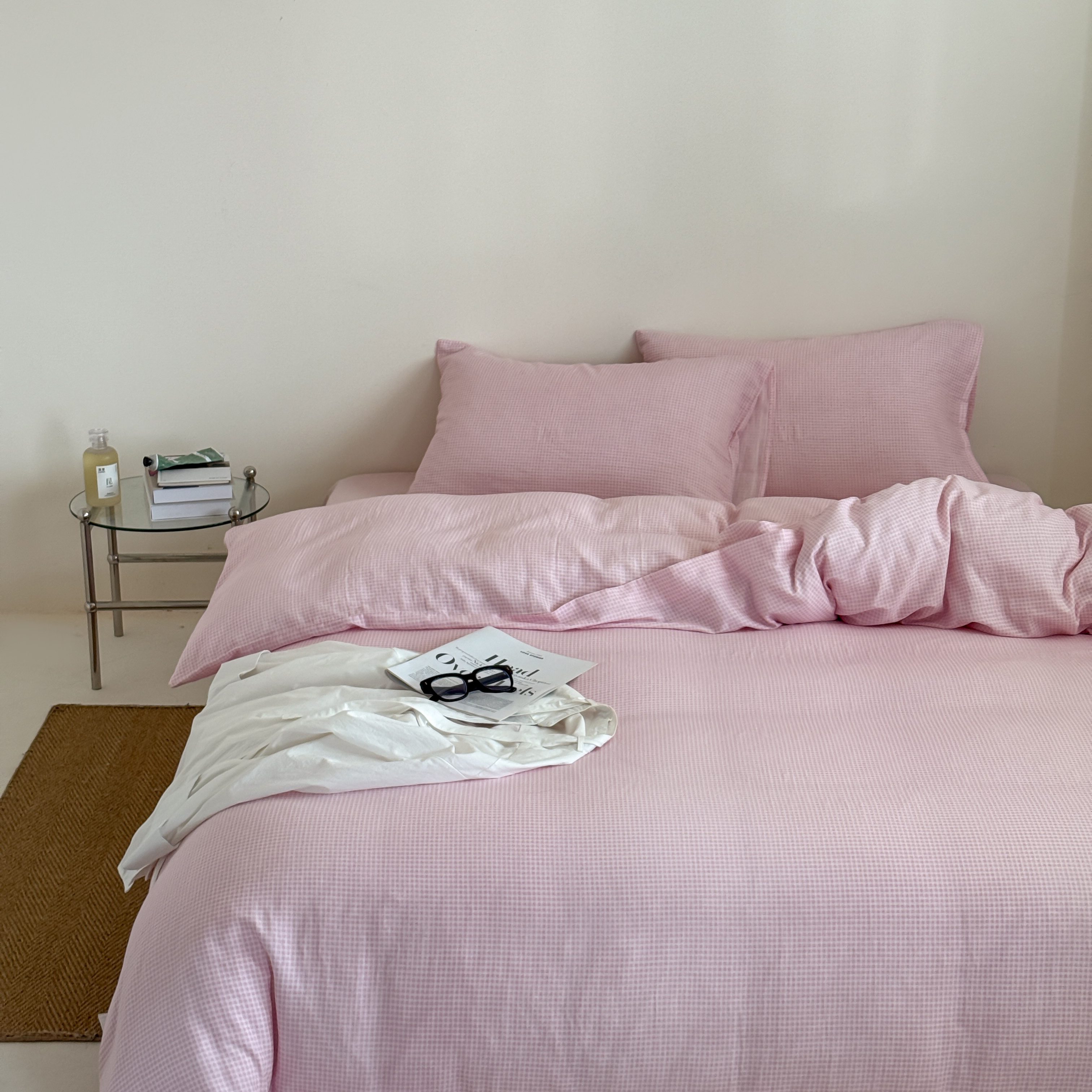 (总)窝米 2025新品全棉纯棉双层纱简约条格四件套系列第二组