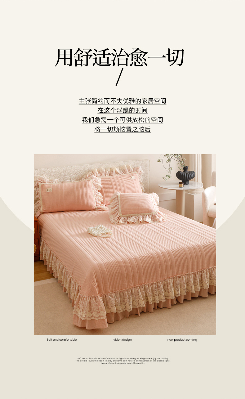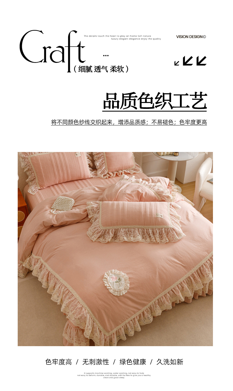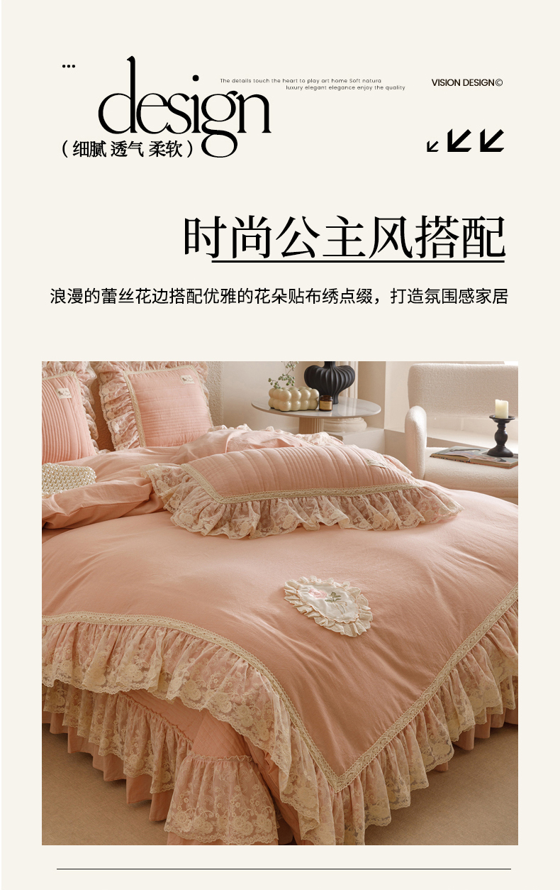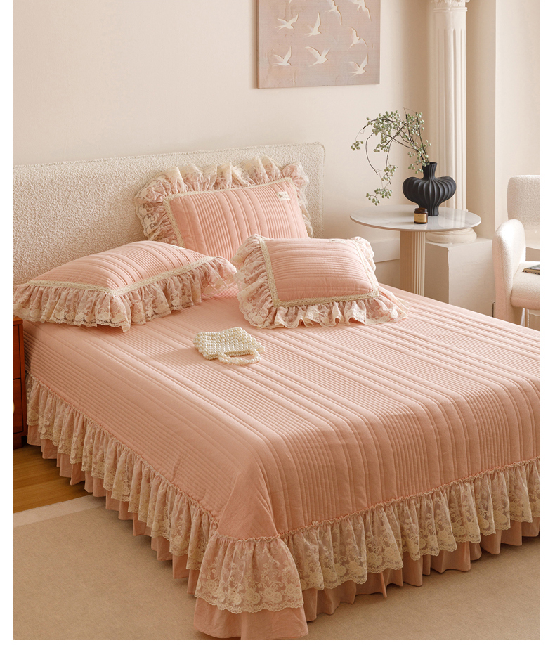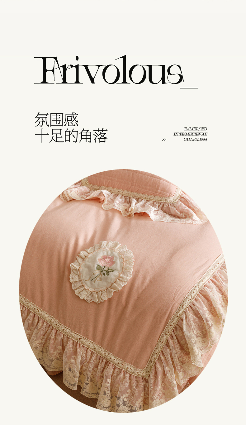 当前位置: 91家纺网 > 商品网购 > 床品套件 > 四件套 > 全棉普通四件套 > 菊上家纺 2025新款全棉色织水洗棉洛丽塔公主床盖款四件套 柔雾粉