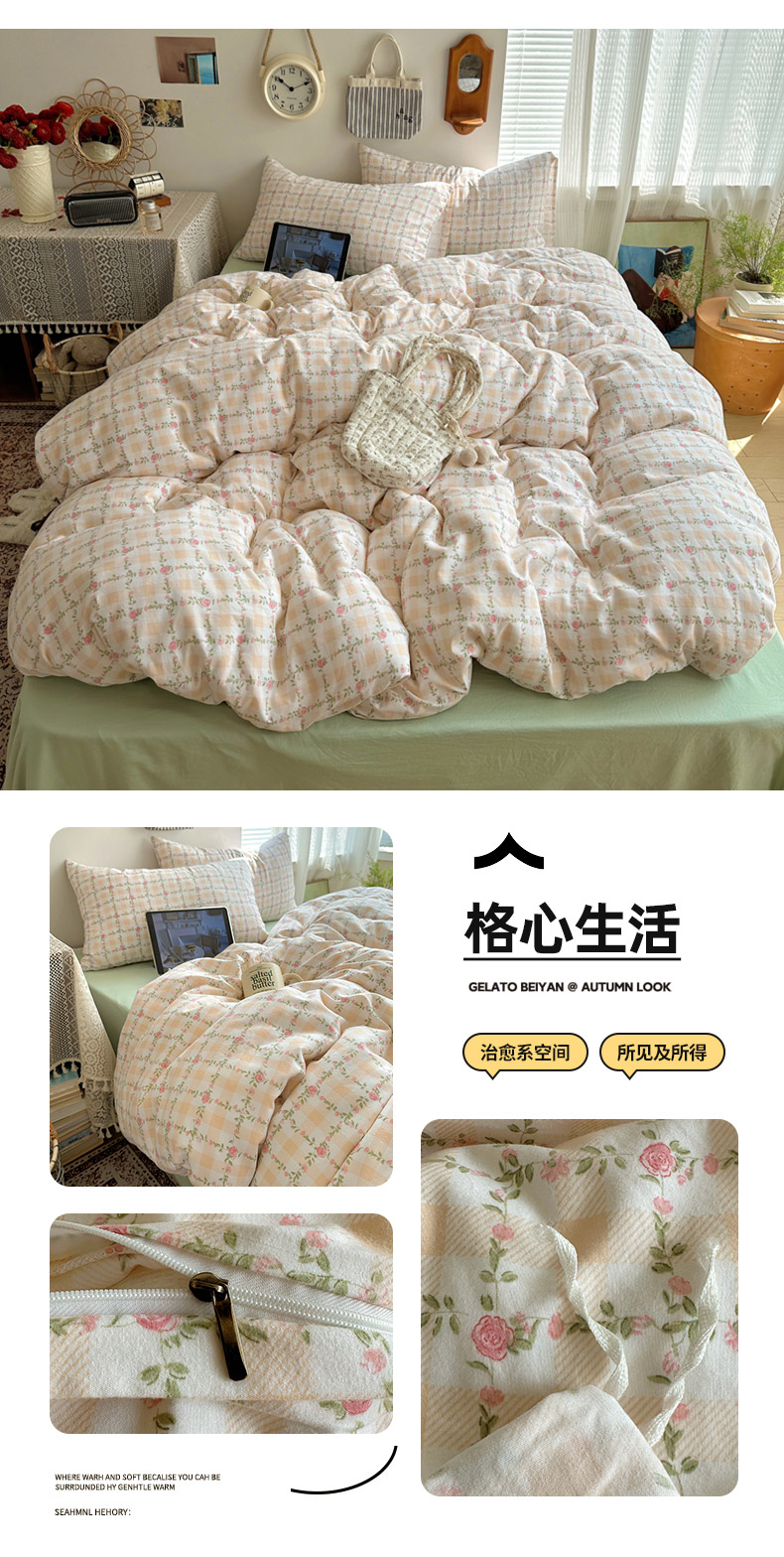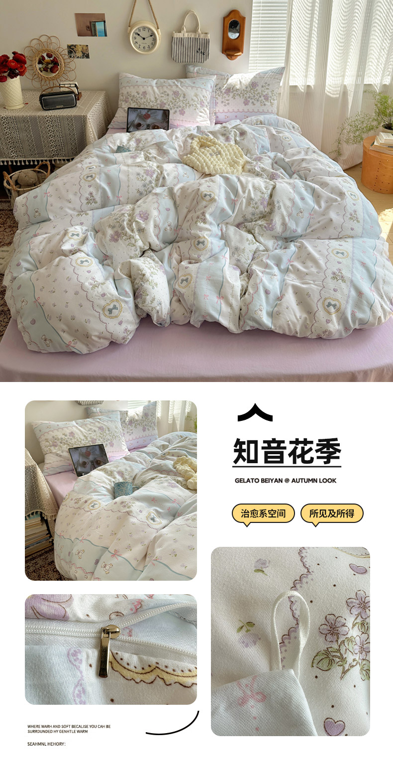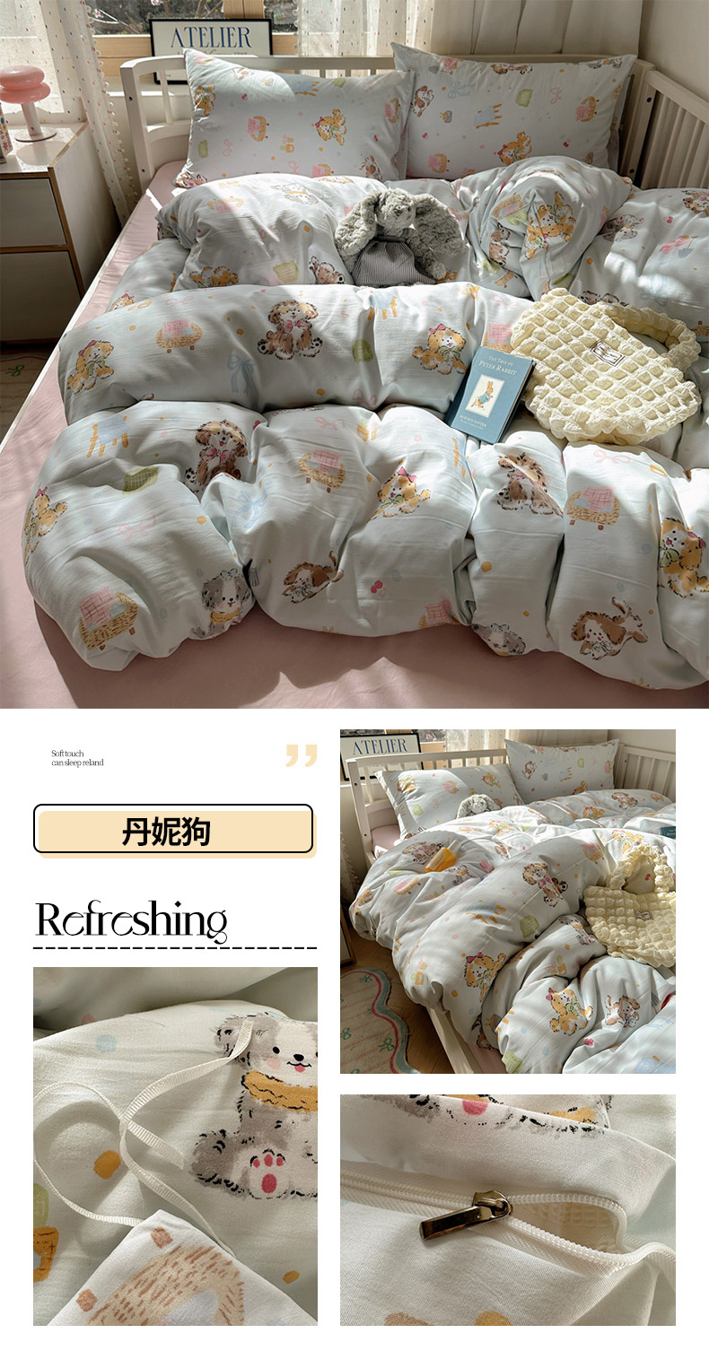 (总)芷凡家纺2025新款水洗棉双层纱云感棉床盖四件套,格心,格心生活,花恋,兰溪园,清茶,时尚蝴蝶结,甜心,玉贵狗