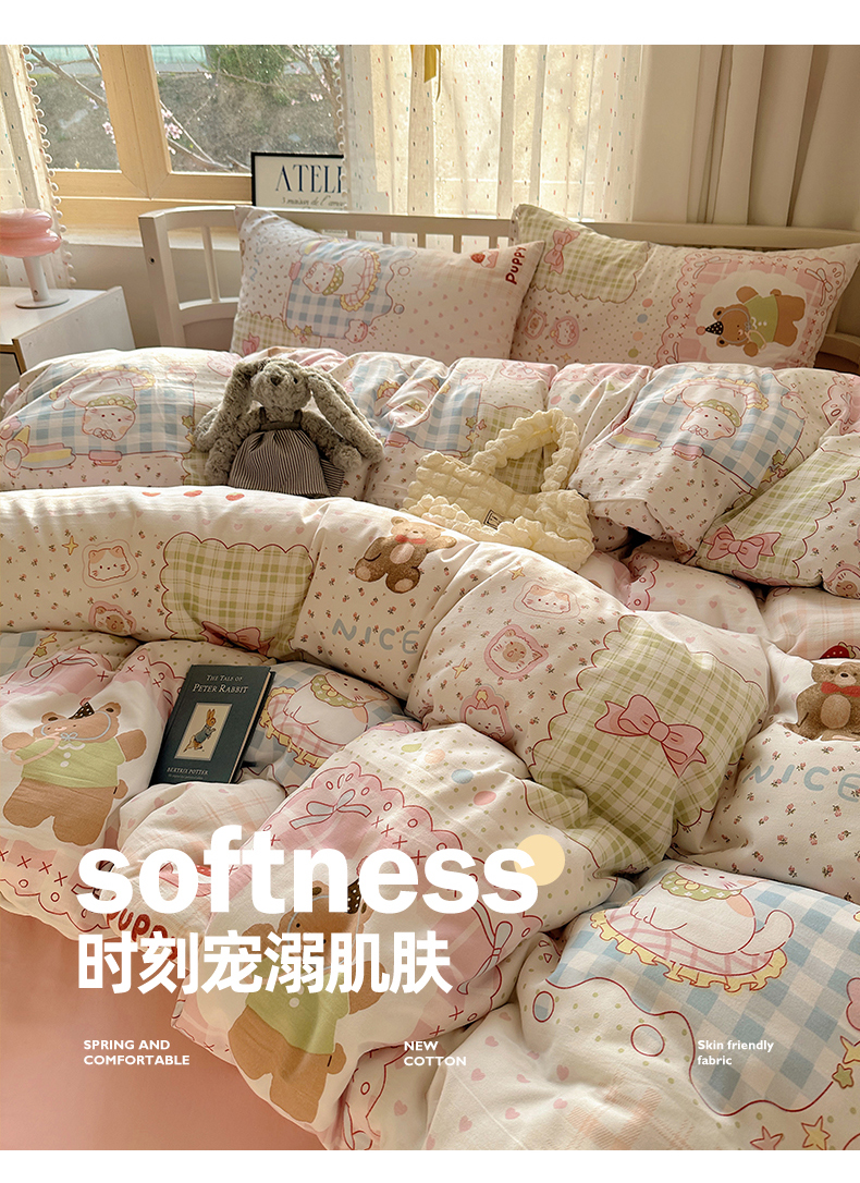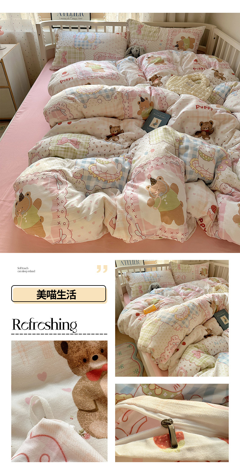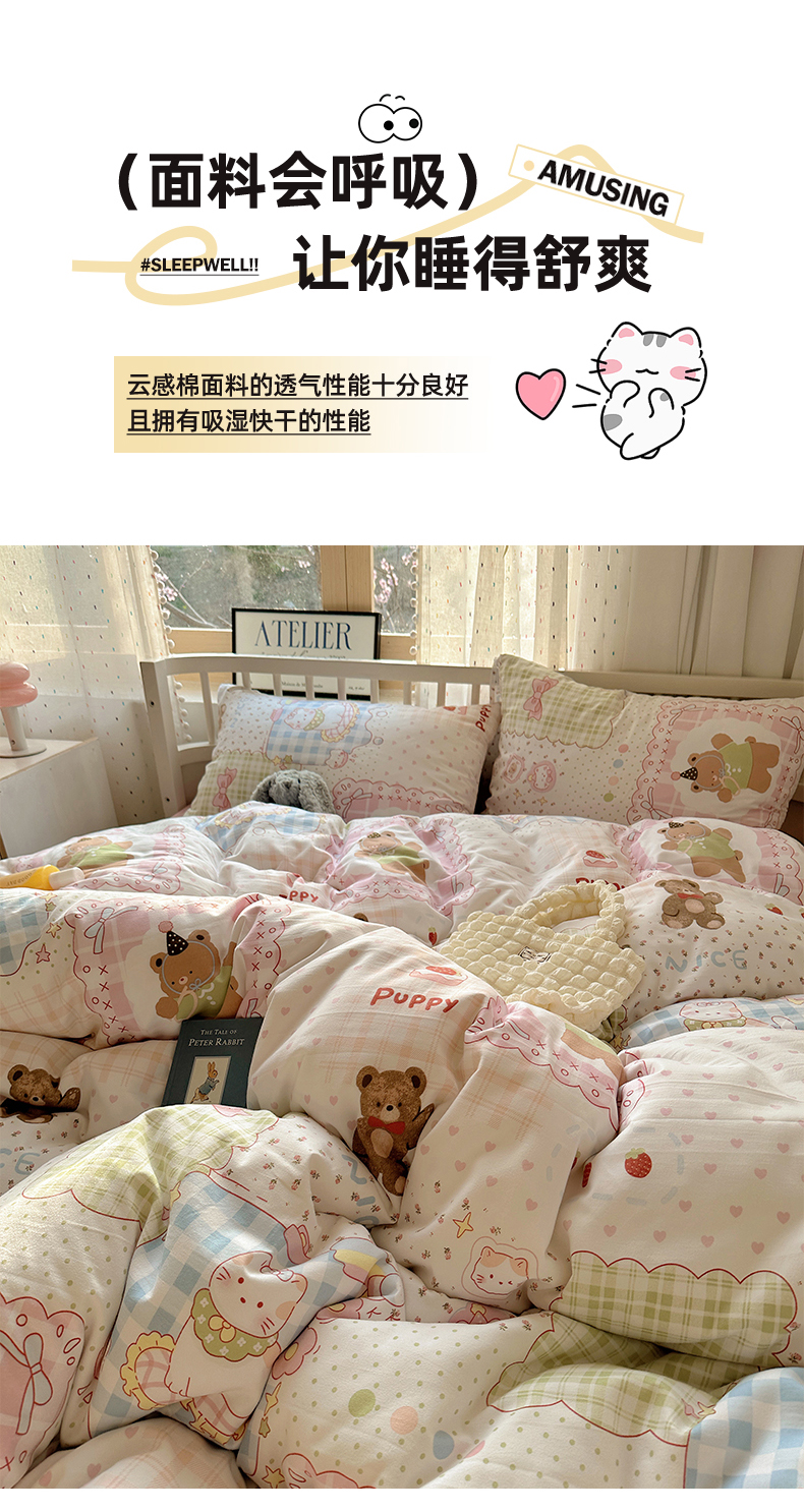 (总)芷凡家纺2025新款水洗棉双层纱云感棉床盖四件套,格心,格心生活,花恋,兰溪园,清茶,时尚蝴蝶结,甜心,玉贵狗