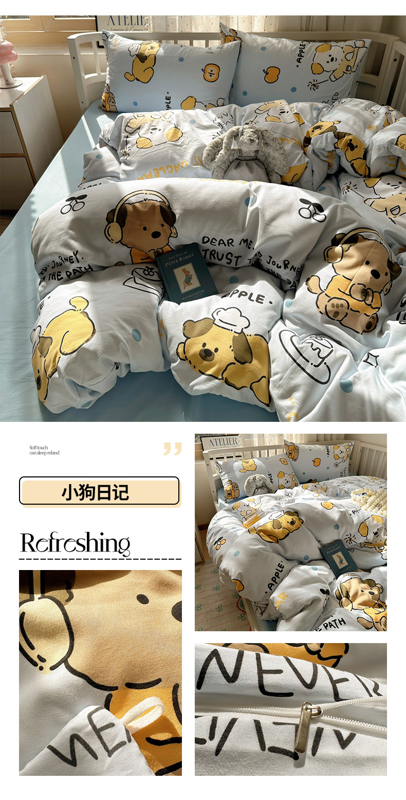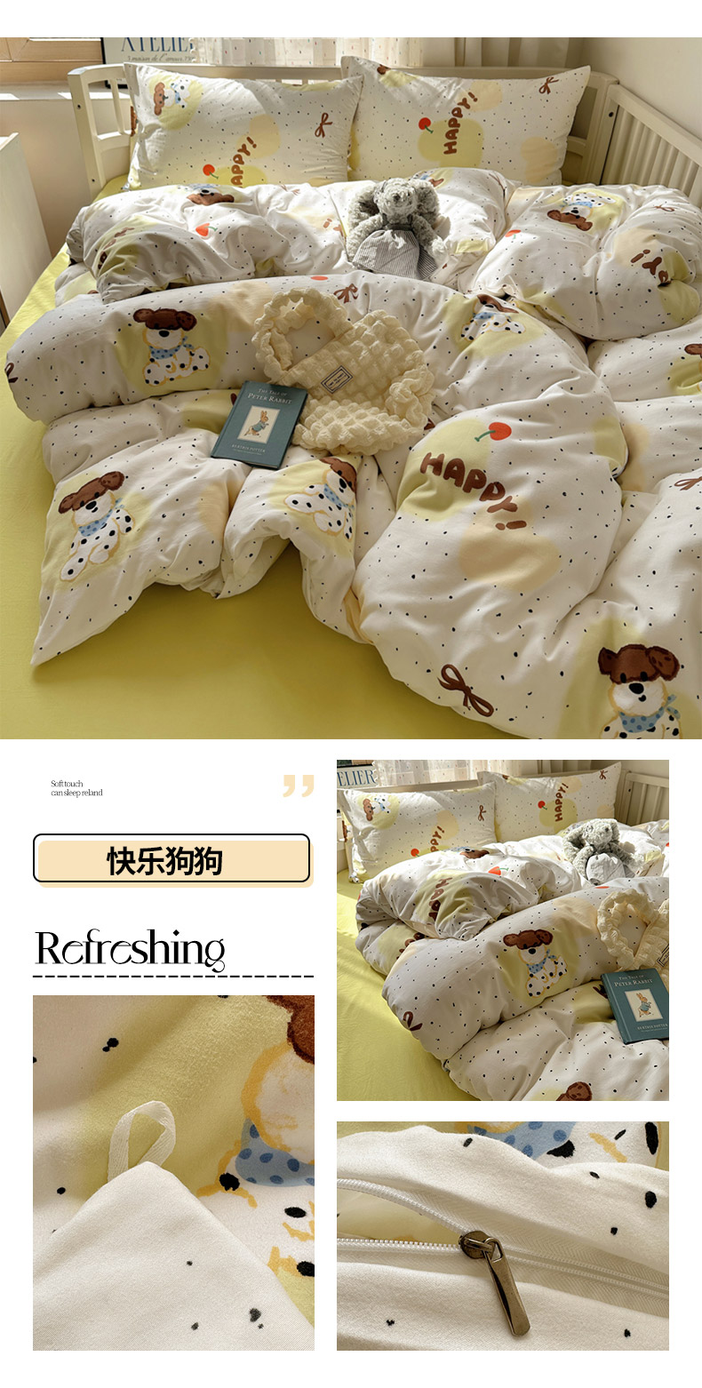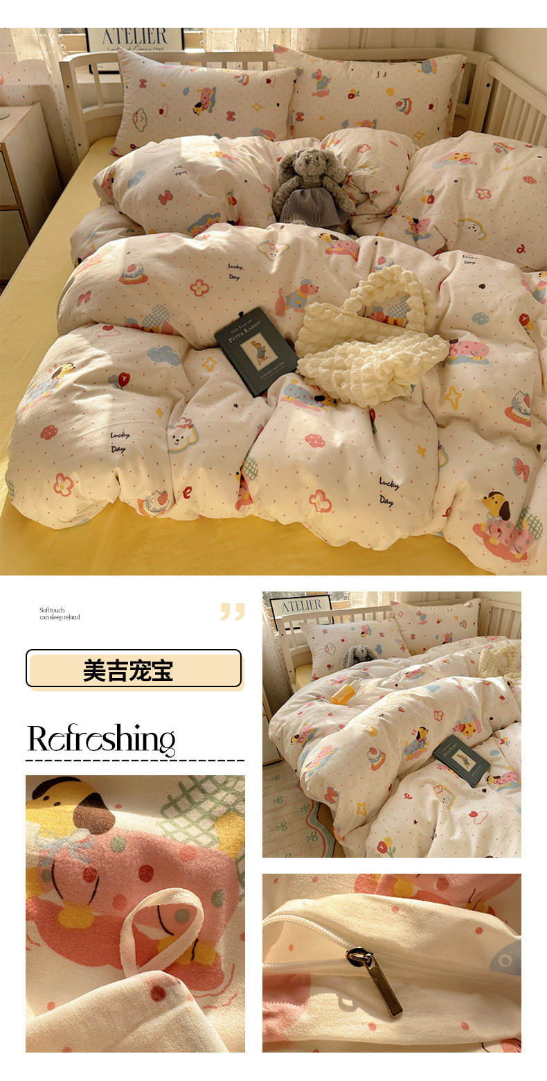 (总)芷凡家纺 2025新款宝宝绒水洗棉高温水洗床盖三件套,福蝶,嗨皮狗,画画的盼达,酷米,快乐伙伴,猫的旅行,你好鸭,派对熊,平安果,甜点派对,云朵狗,追光
