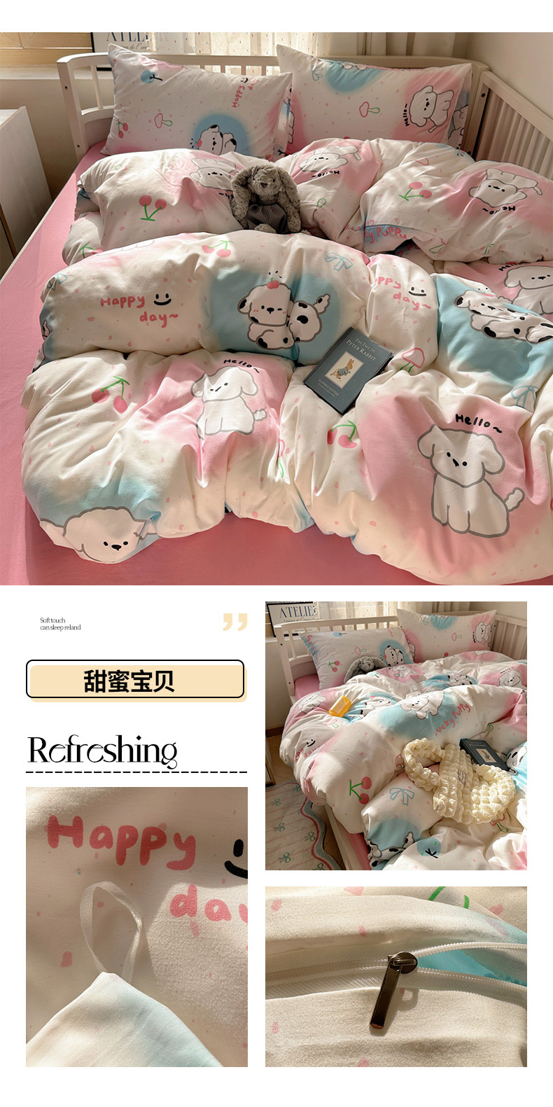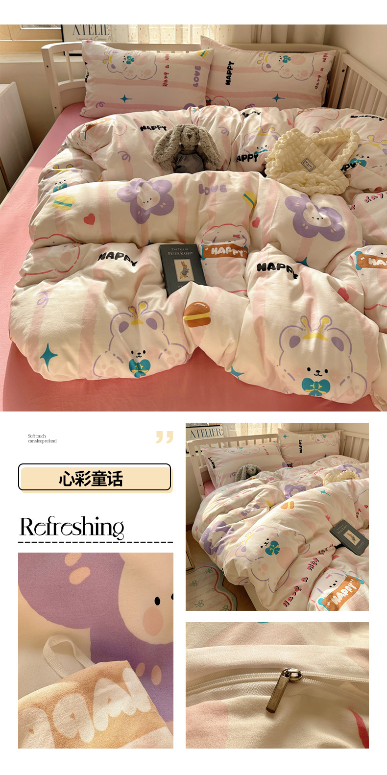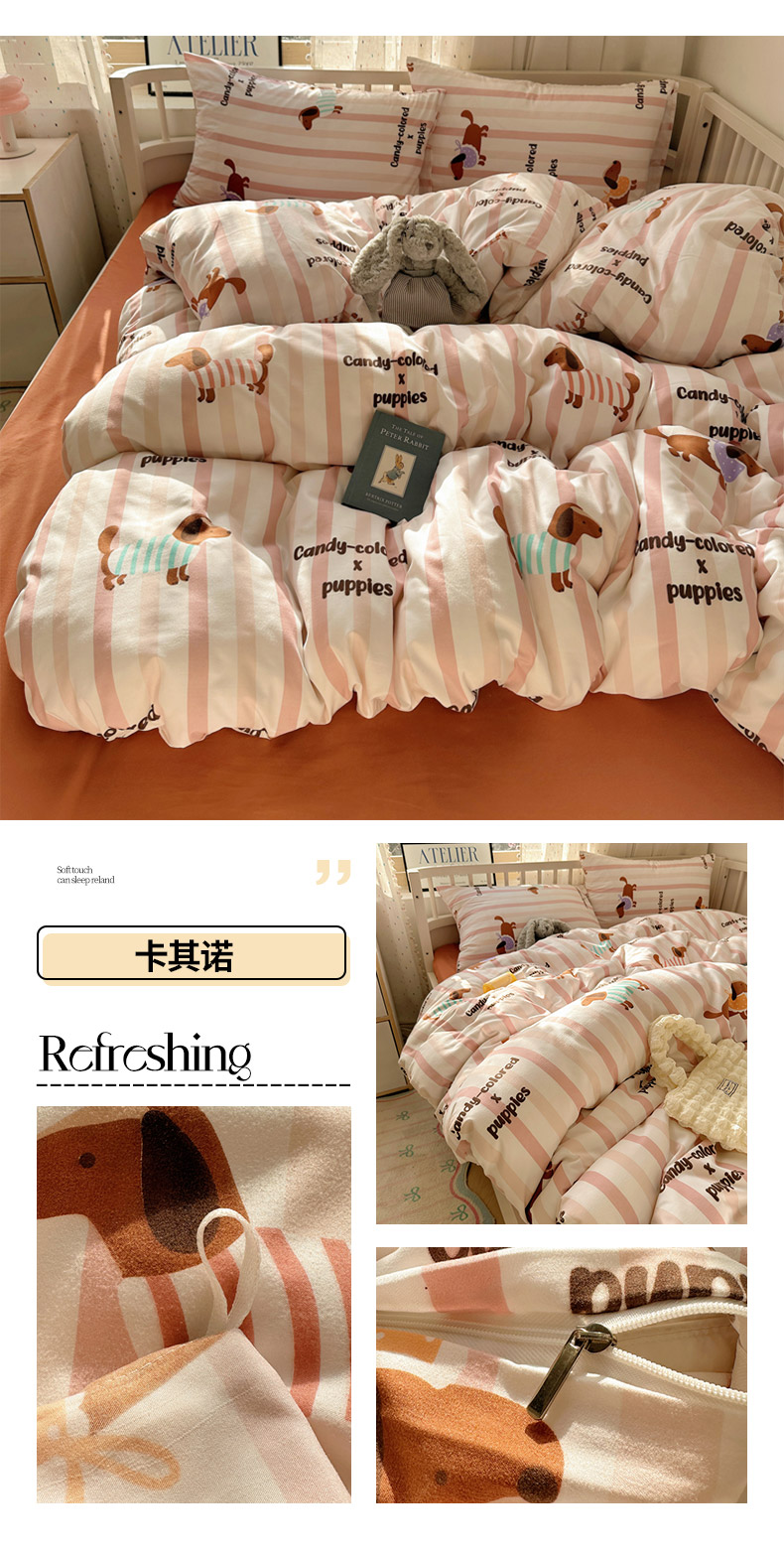 (总)芷凡家纺 2025新款宝宝绒水洗棉高温水洗床盖三件套,福蝶,嗨皮狗,画画的盼达,酷米,快乐伙伴,猫的旅行,你好鸭,派对熊,平安果,甜点派对,云朵狗,追光