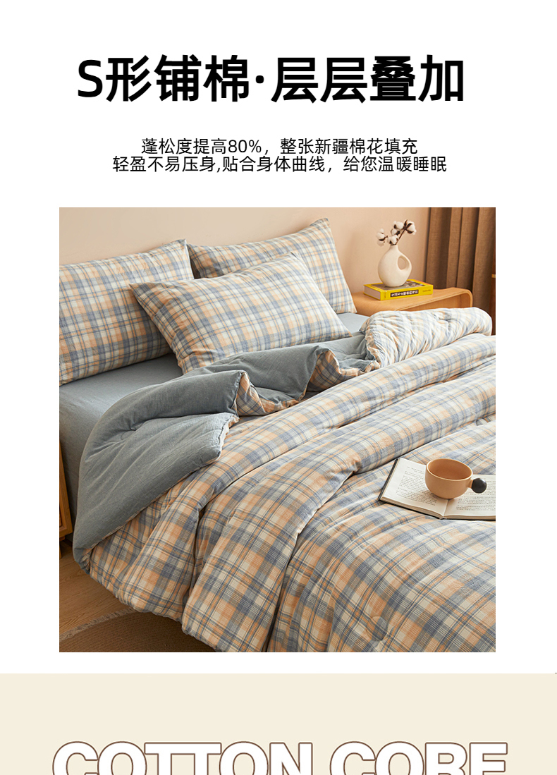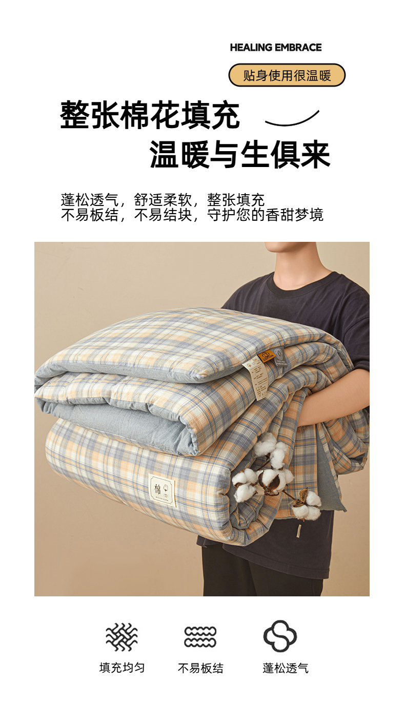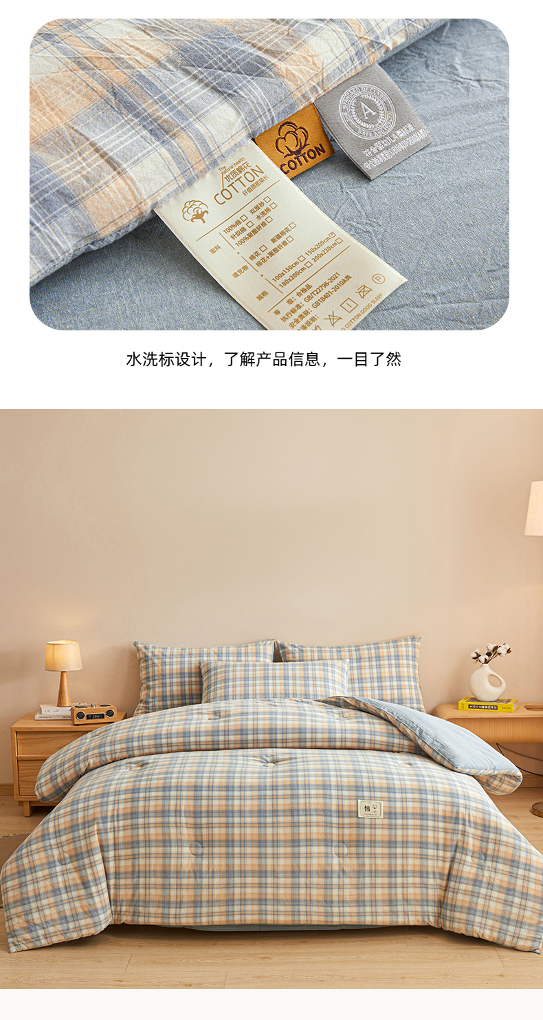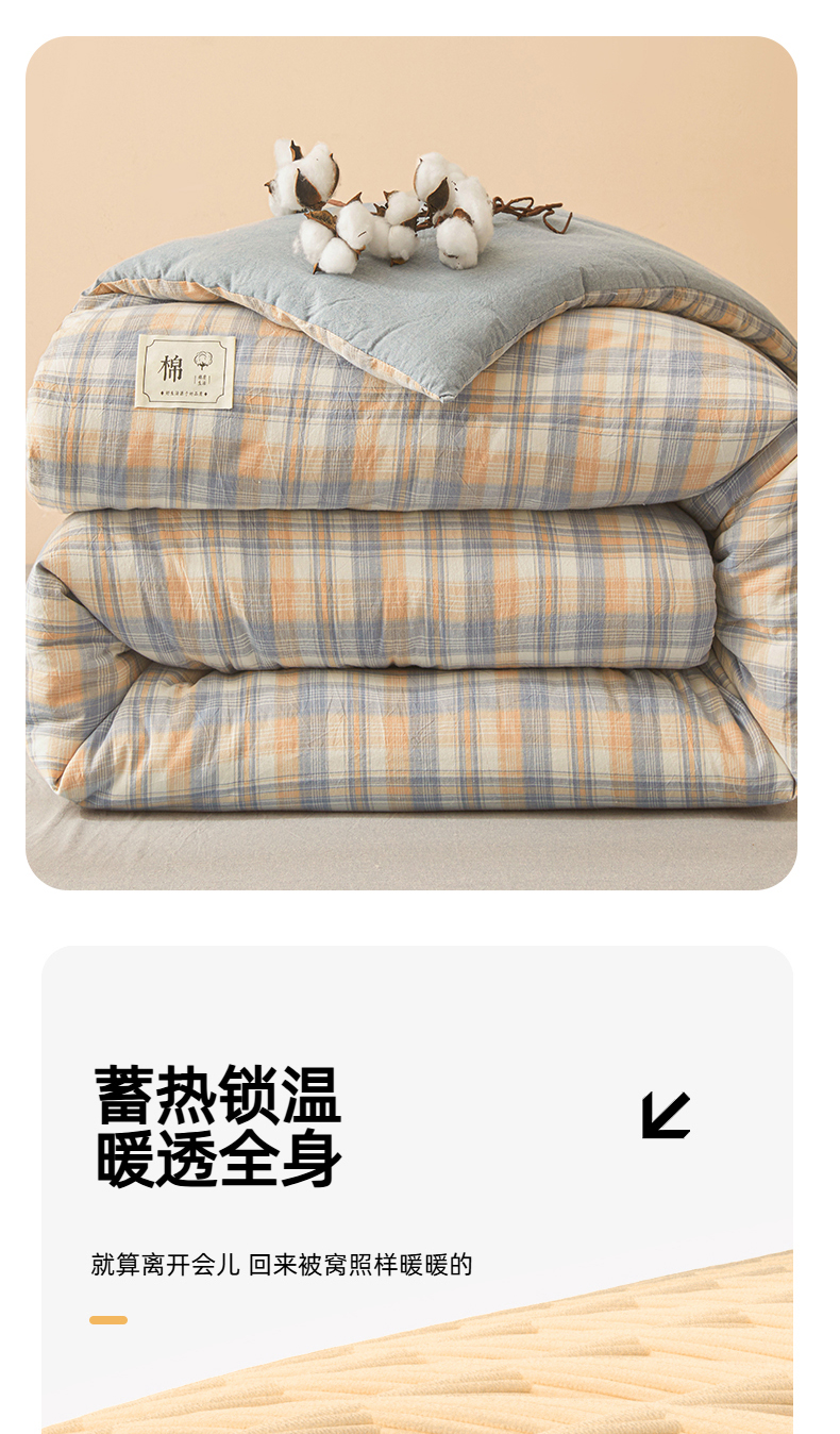 • 91家纺网 家纺一手货源 找家纺 爱屋及屋 2025新款无印风水洗棉棉花冬被被子被芯 雅致格