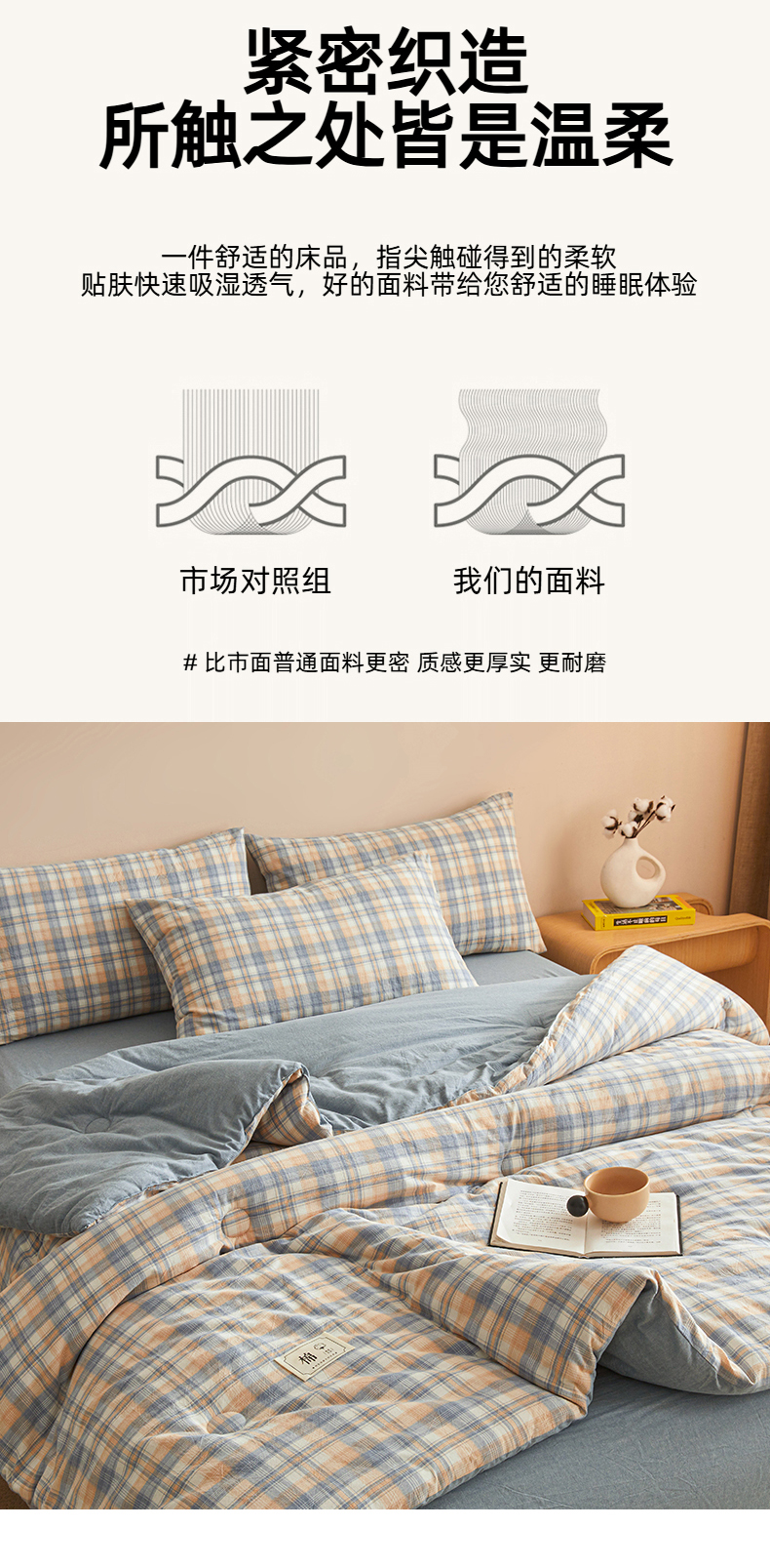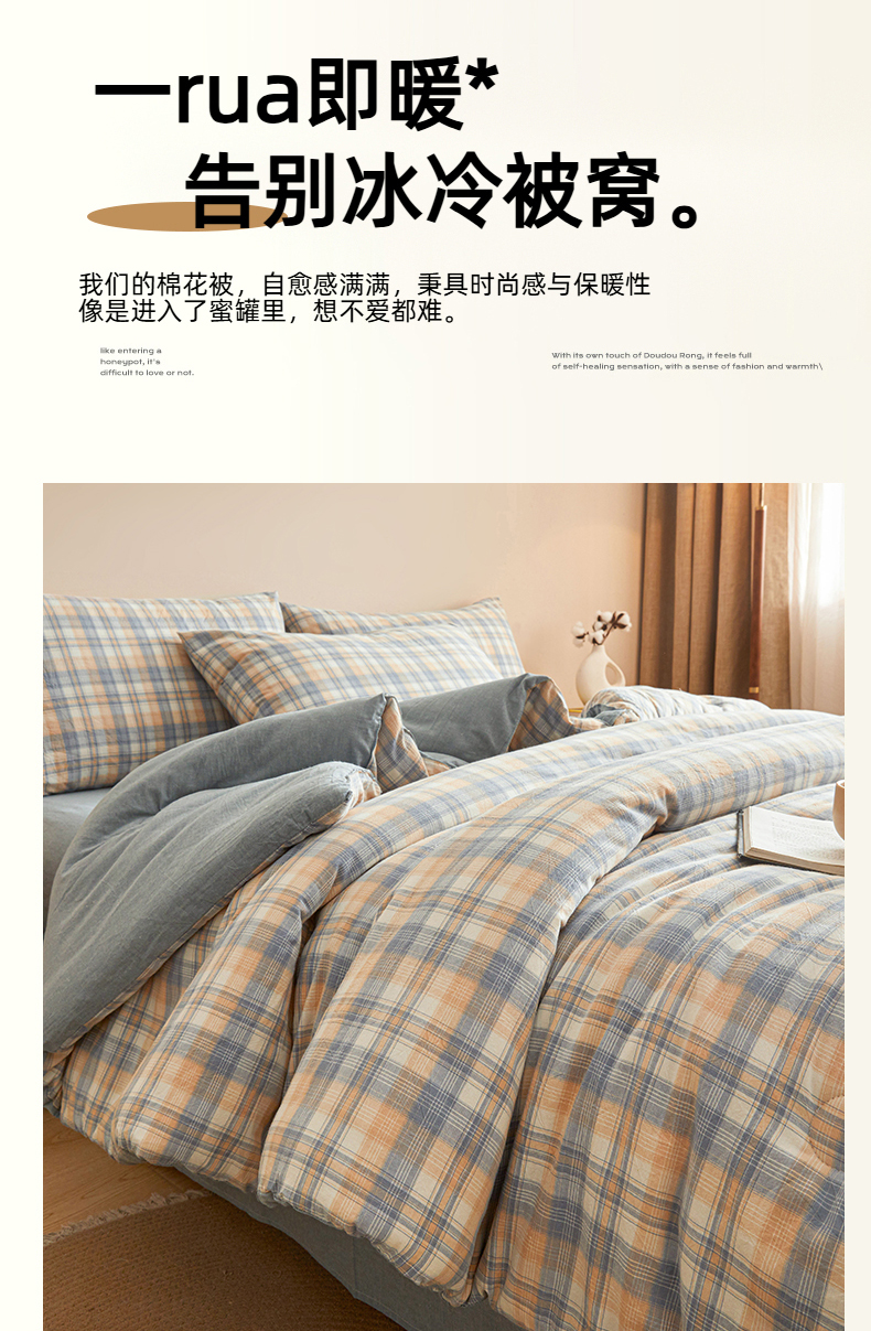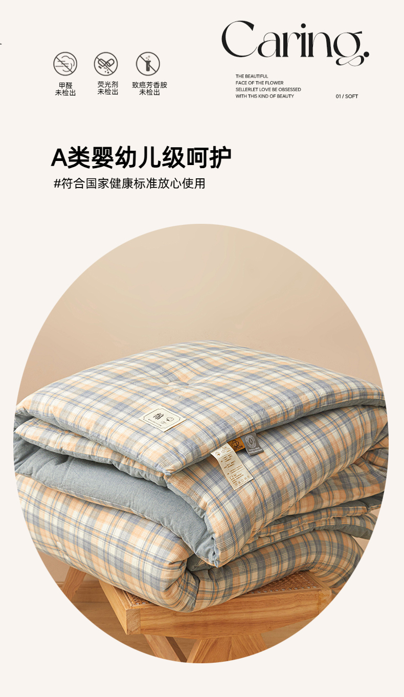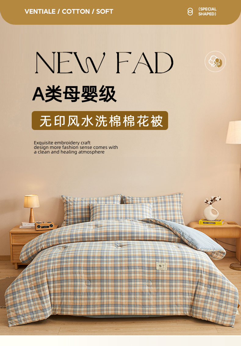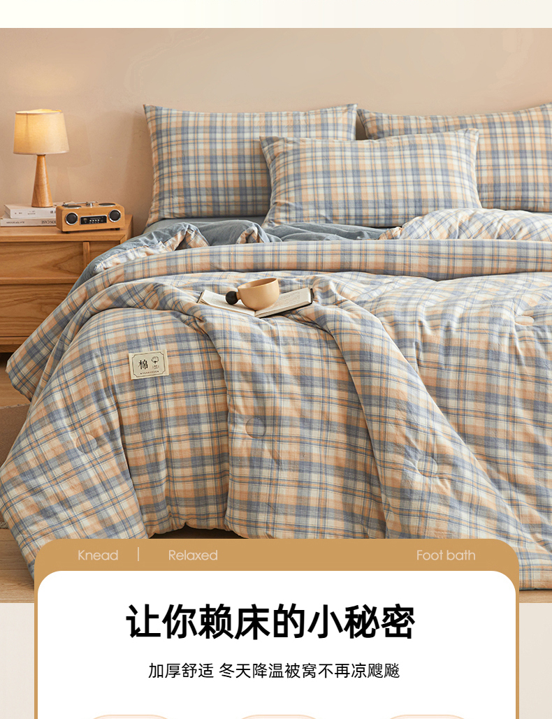 • 91家纺网 家纺一手货源 找家纺 爱屋及屋 2025新款无印风水洗棉棉花冬被被子被芯 雅致格