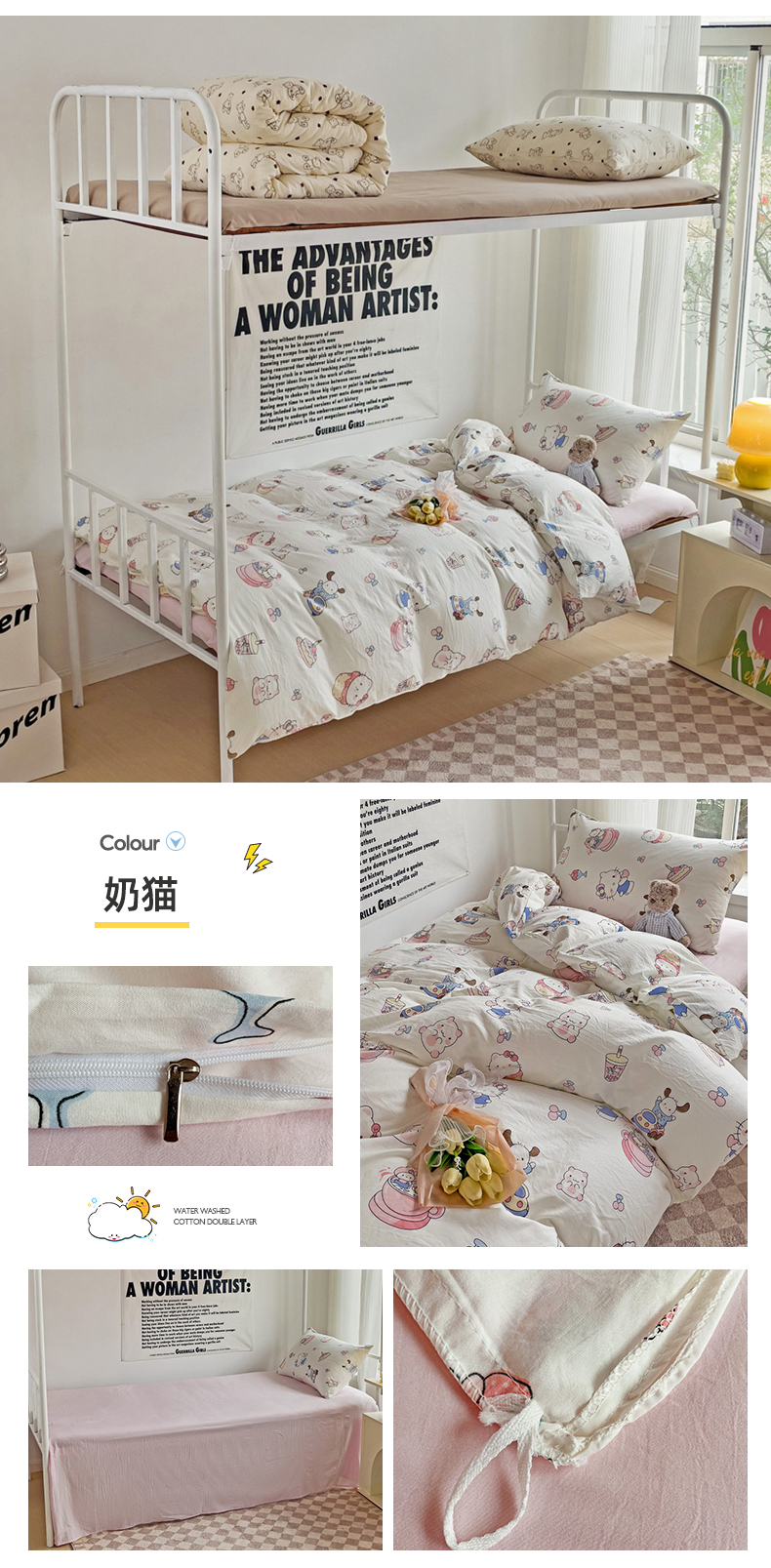 当前位置: 91家纺网 > 商品网购 > 床品套件 > 三件套 > 芷凡家纺 2025新款水洗棉双层纱学生三件套宿舍上下铺三件套 小南瓜