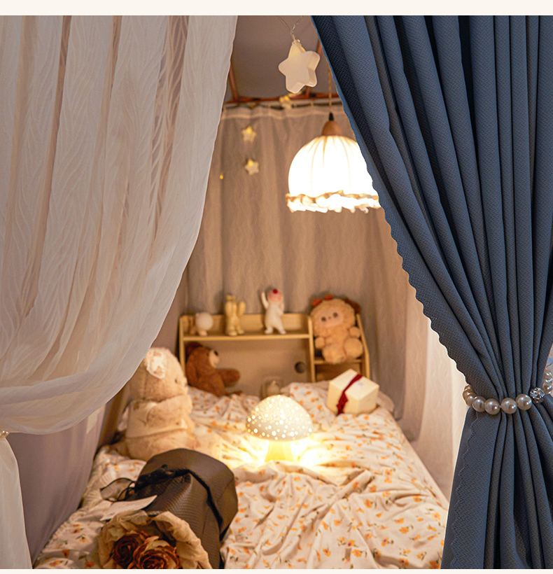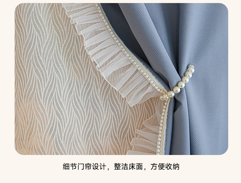 商品名称:飞轮海蚊帐 2025新款雪尼尔法式遮光床帘-XD系列 律动-蓝灰
