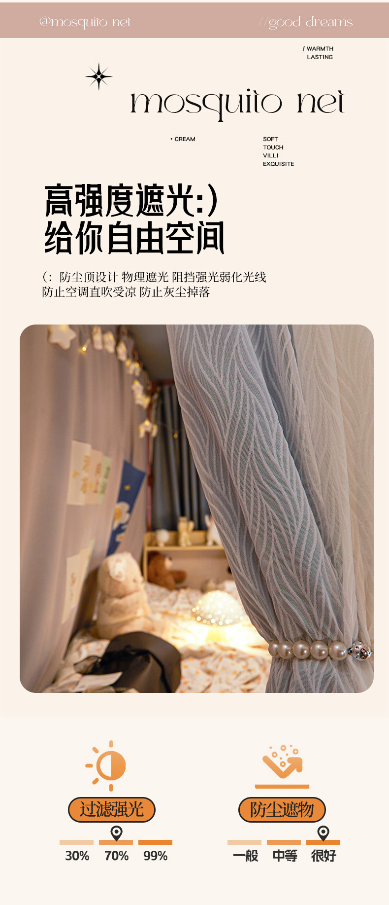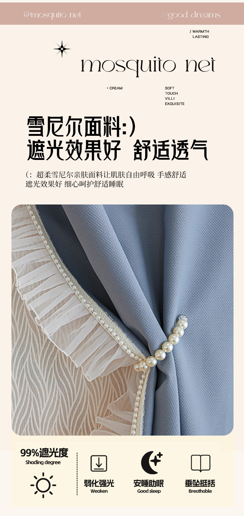 (总)飞轮海 2025新款全包遮光防蚊蚊帐Z31,黛蓝,奶油黄,香槟