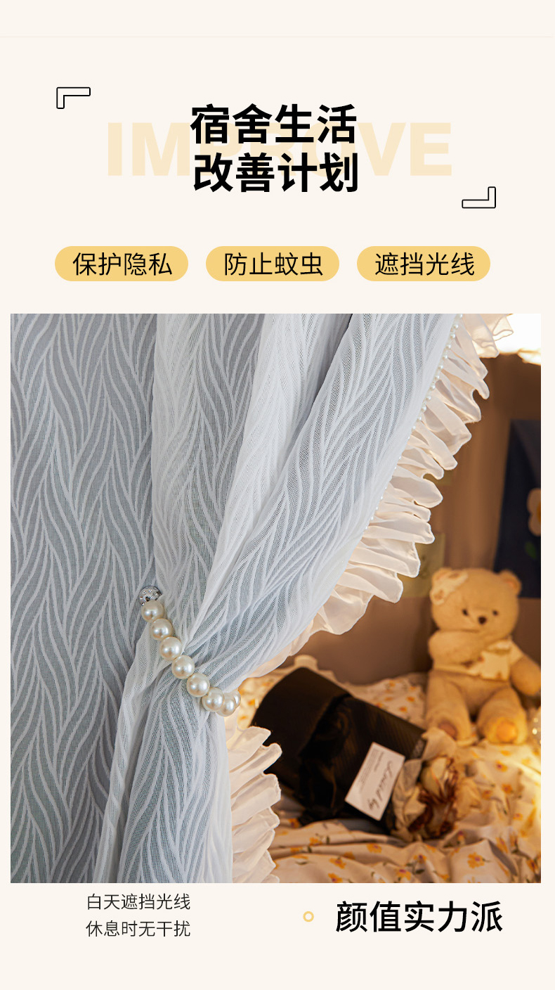飞轮海蚊帐 2025新款强遮光防蚊学生蚊帐-XZ-99(靠墙帘选配)熊猫宝,熊猫宝