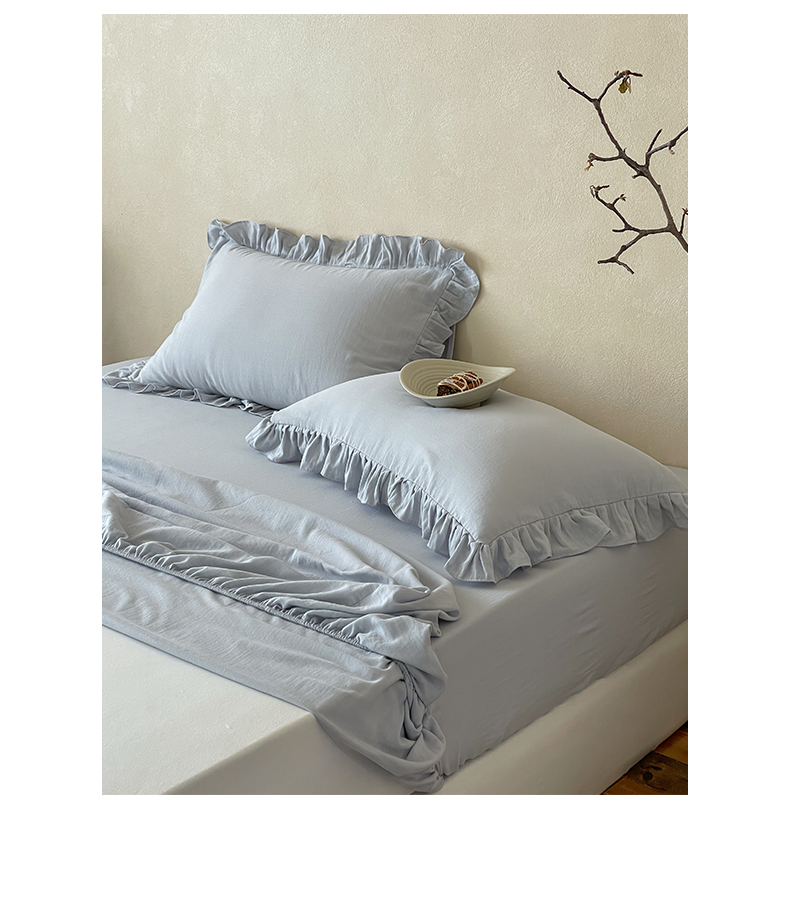 商品名称:三味舒屋 2025新款花边美学全棉双层纱单品单床笠 云舒白