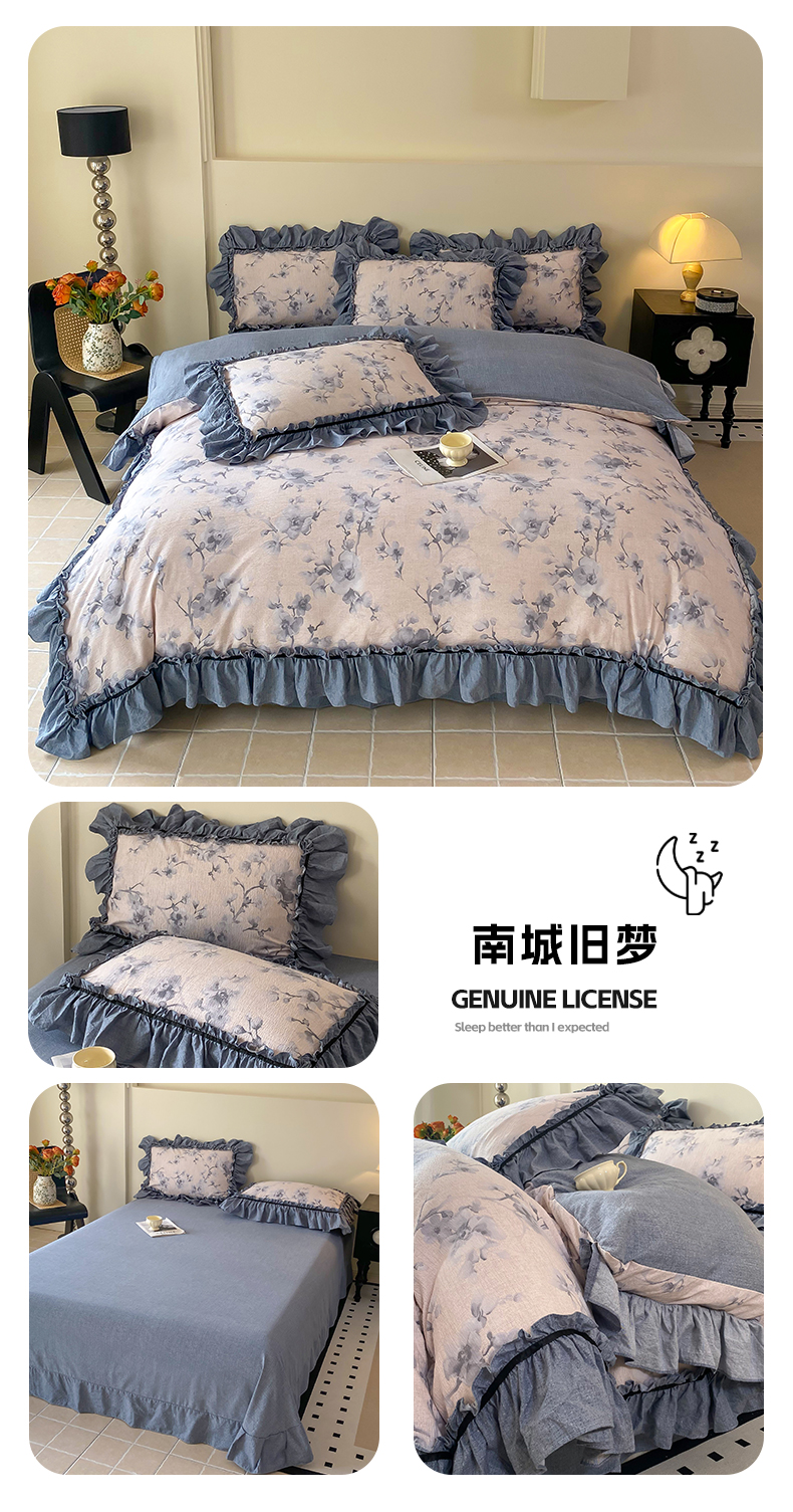 (总)大麦家纺 2025新款水洗亚麻花边四件套,粉黛佳人,风木槿咖,浮生花语,海棠花溪,花颜,锦瑟,满园花开,山花浪漫,颂青时,香榭花园,玉茗
