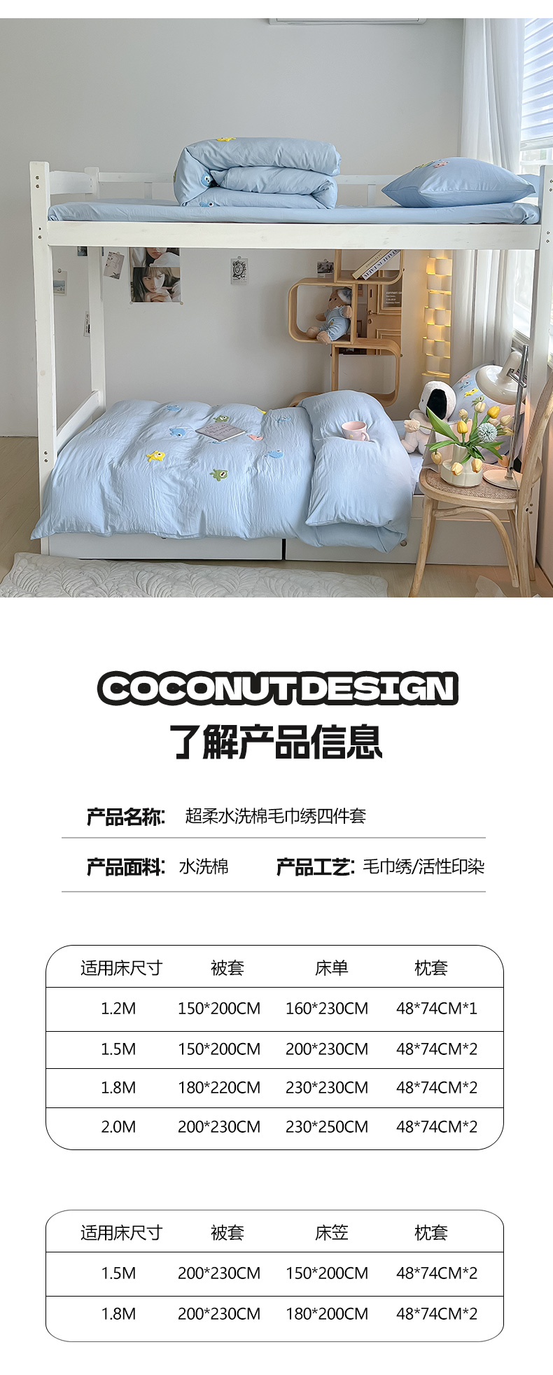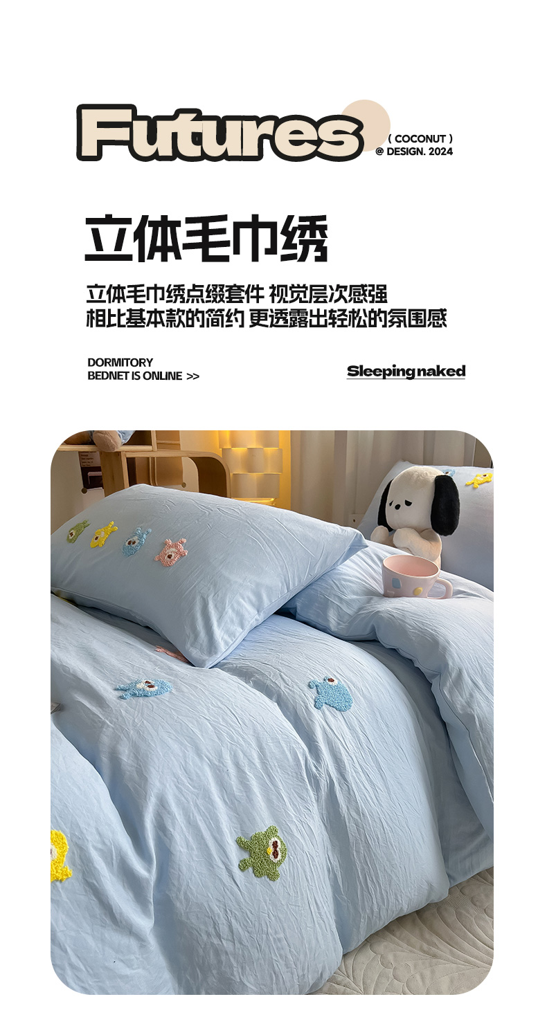 商品名称:(总)爱彼家纺 2025新款超柔水洗棉怪兽毛巾绣学生宿舍三件套上下铺三件套
