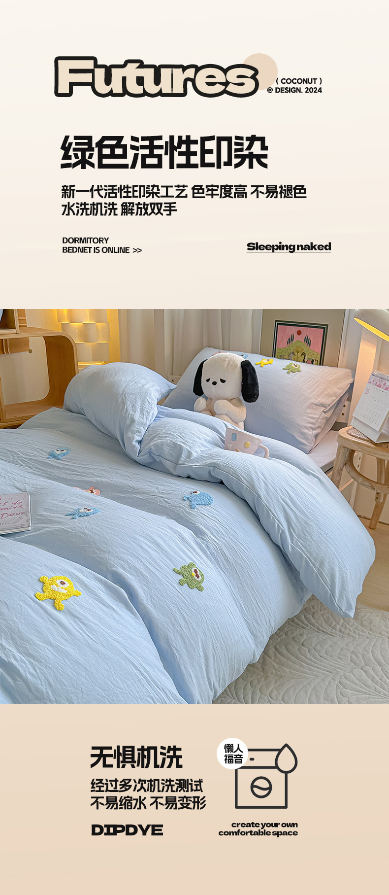 (总)爱彼家纺 2025新款超柔水洗棉怪兽毛巾绣学生宿舍三件套上下铺三件套