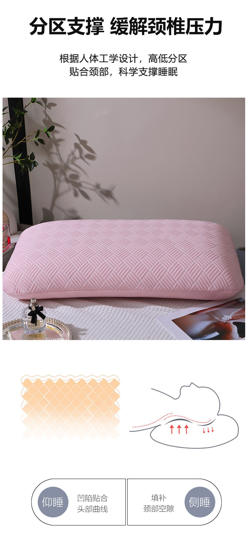 (总)四川牛皮席 2025新款乳胶功能枕格子枕头枕芯 热熔棉舒适柔软回弹枕头枕芯48*74cm/只,格子-大白,格子-粉色