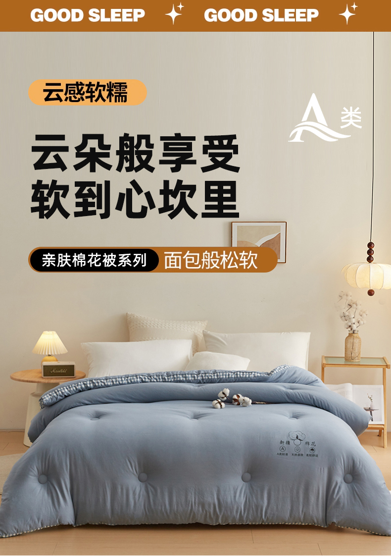 • 91家纺网 家纺一手货源 找家纺 帕芬鸟家纺 2025新款51%立体款棉花被 被子被芯 星空蓝
