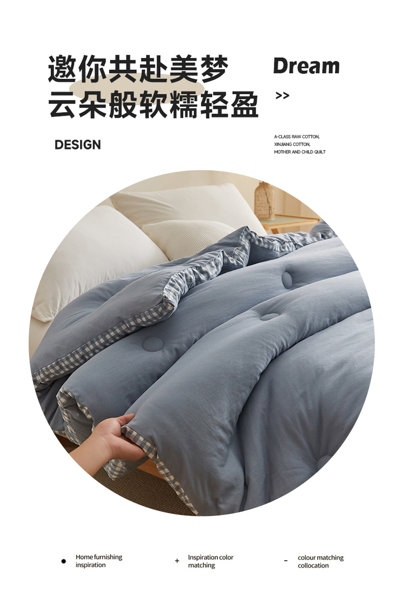 • 91家纺网 家纺一手货源 找家纺 (总)帕芬鸟家纺 2025新款超柔水洗棉大豆被子被芯,米白拼绿,灰色,米白色,玉色,咖色