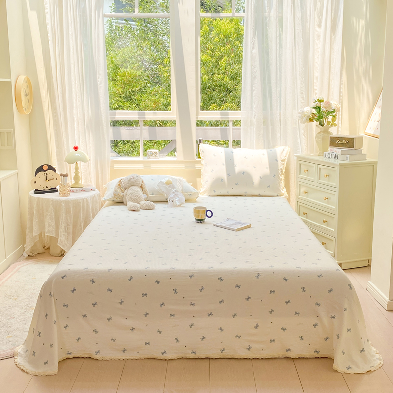 • 91家纺网 家纺一手货源 找家纺 欧尚 2025新款云感双层纱针织棉印花母婴级超柔裸睡级床单三件套 软软熊猫