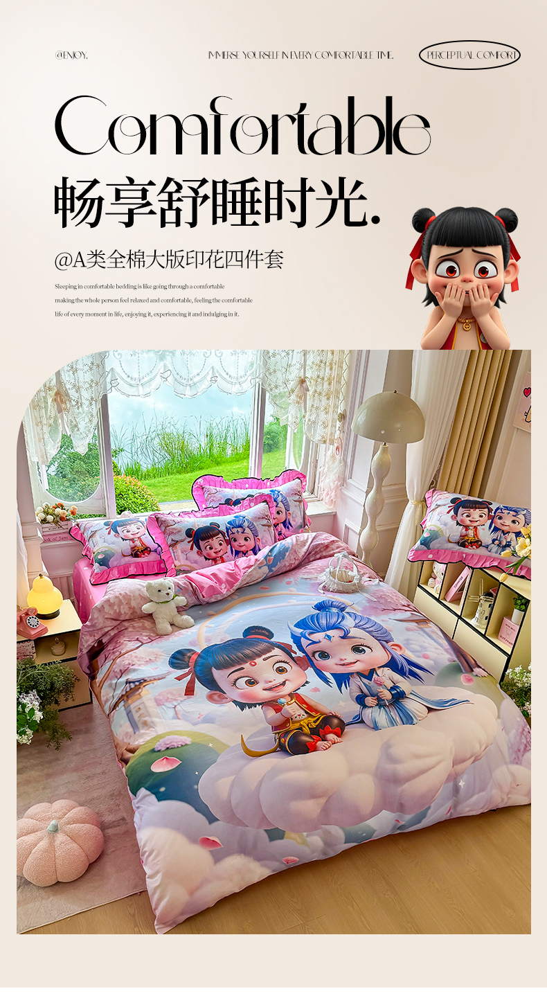 (总)馨语家居 2025新款直播热款高克重保暖卡通牛奶绒印花四件套,幸运草莓,一路生花,针织小熊,彩虹碧琪,彩虹哪吒,草莓哪吒,海洋机器人,郊游哪吒,恐龙球队,魔童哪吒,哪吒敖丙,南通狼,漂流哪吒,少年哪吒,神龙哪吒,腾云哪吒,娃娃机,未来萌宠,小马碧琪,小奶龙,浴火哪吒