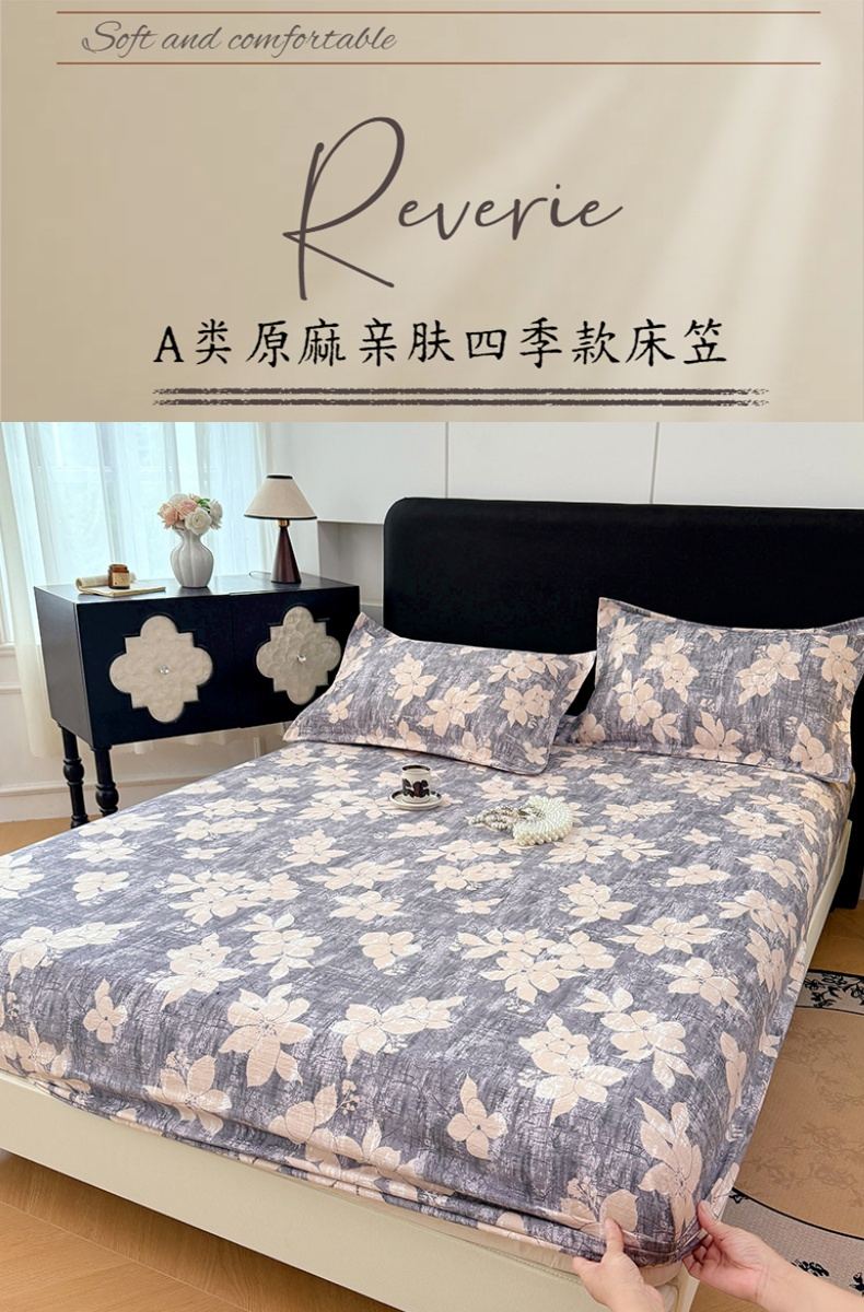 • 91家纺网 家纺一手货源 找家纺 圣比熊 2025新款原麻床笠机洗家用防滑透气四季款床罩床垫床单保护套 陌上花开-咖