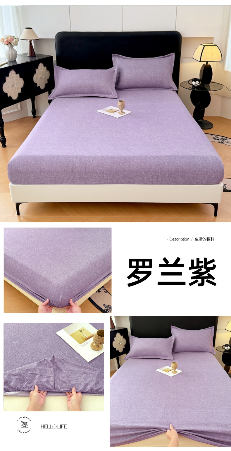 • 91家纺网 家纺一手货源 找家纺 梦舒羽 2025新款原麻床笠机洗家用防滑透气四季款床罩床垫床单保护套 罗兰紫