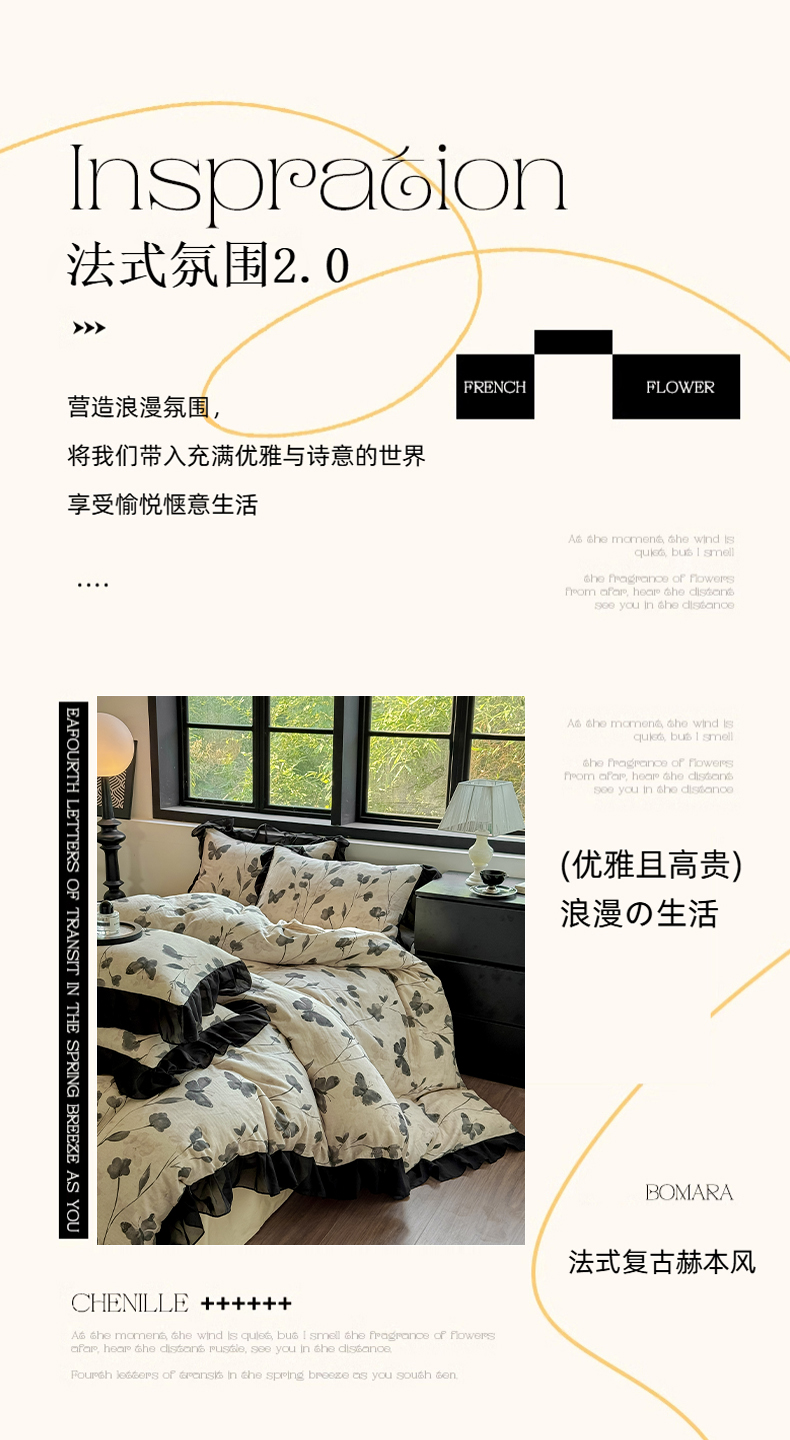 (总)宅家居 2025新款热卖热款轻法式复古赫本风绒高克重浮雕花牛奶绒四件套烂花韩版黑色花边三件套,丛林迷影,蝶之花语,花恋密语,叶语悠然,蝶舞恋曲,花岸澜庭,壹枝玫瑰,夜半花香,优雅花卉