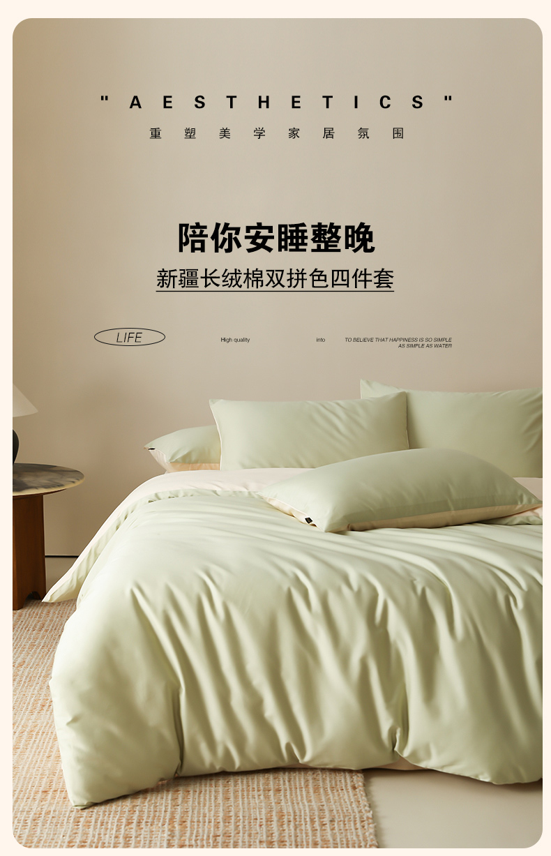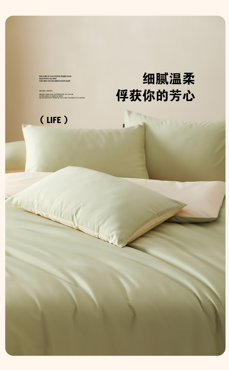 当前位置: 91家纺网 > 商品网购 > 床品套件 > 四件套 > 全棉普通四件套 > 云栖家居 2025新款全棉纯棉纯色双拼色长绒棉纯棉四件套--极简 原力绿&米粒碎