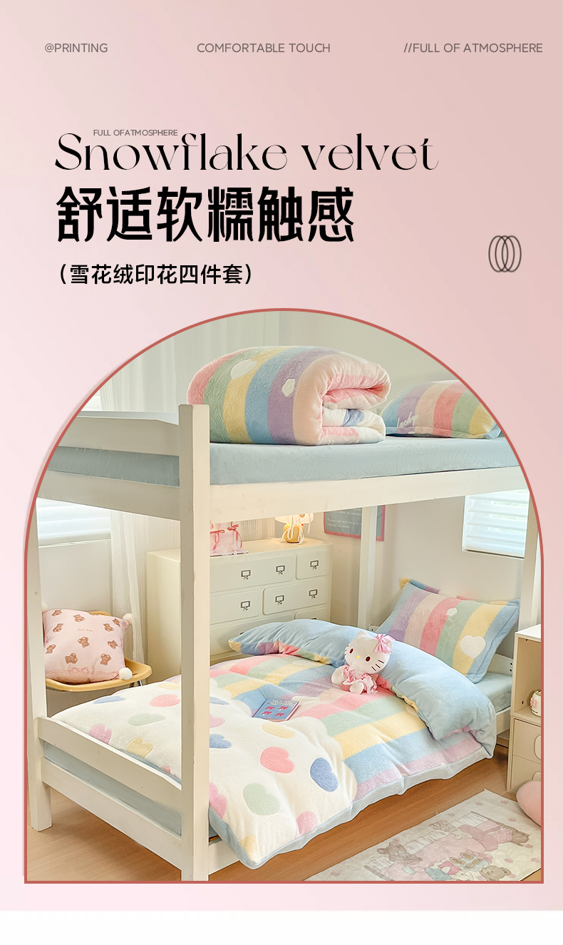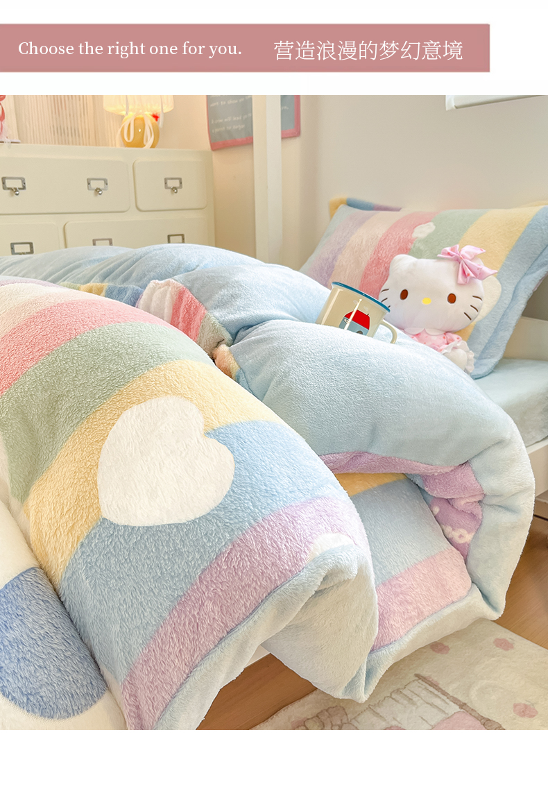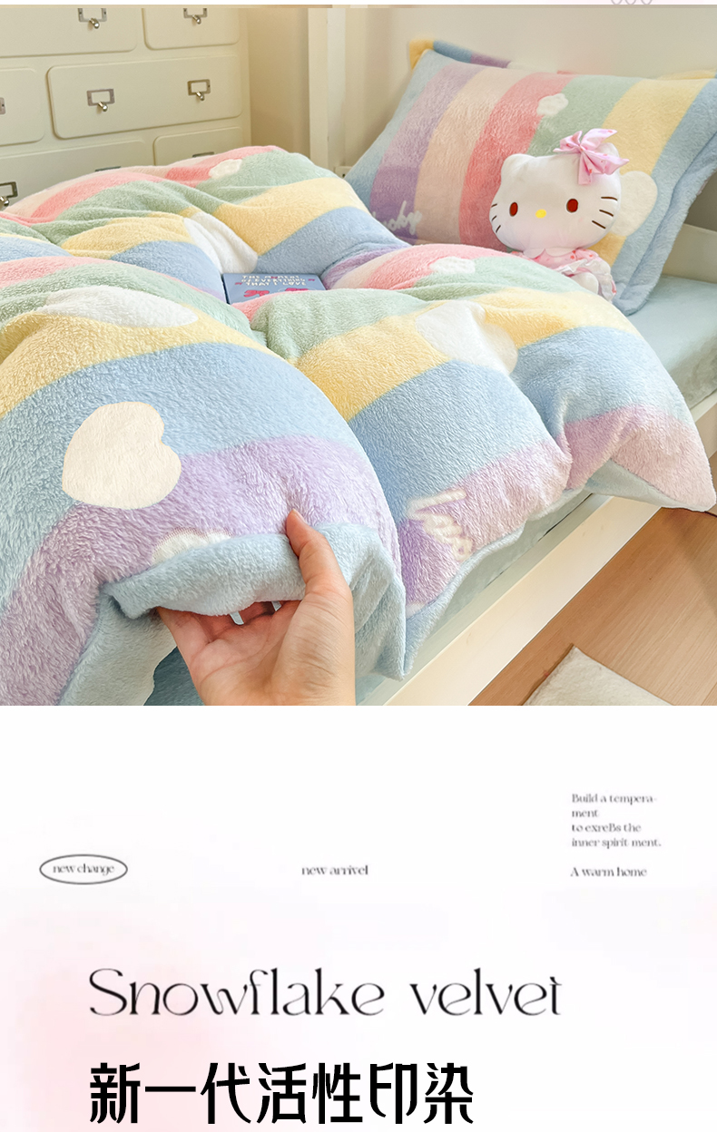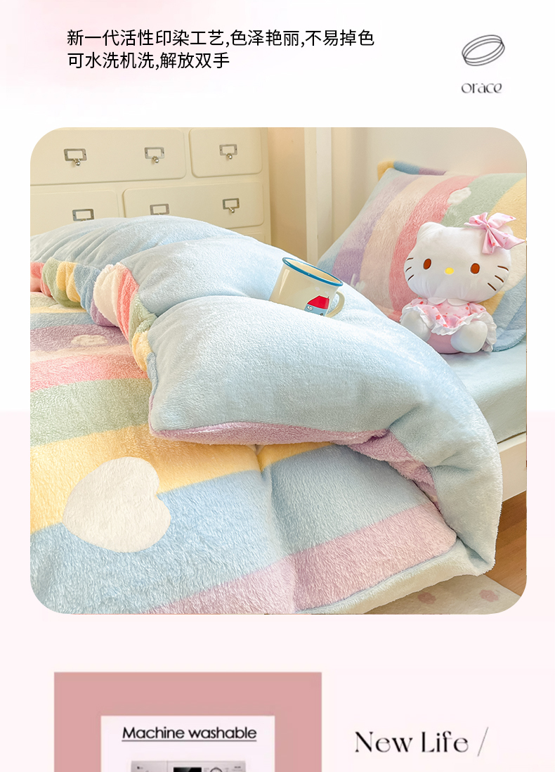 当前位置: 91家纺网 > 商品网购 > 床品套件 > 四件套 > 其它四件套 > 川悦生活 2025新款立体雪花绒印花四件套学生床系列一场景一 彩虹爱心蓝