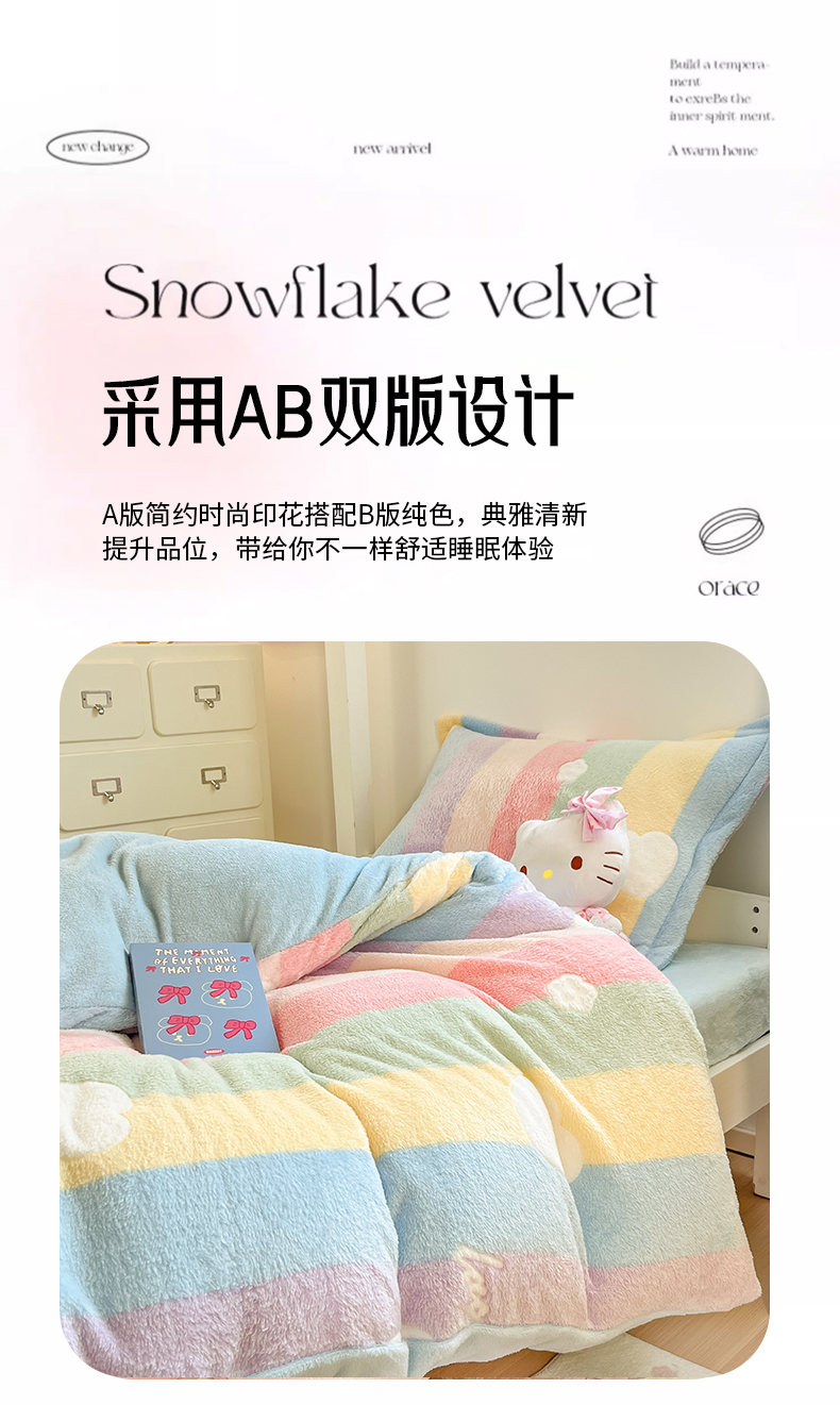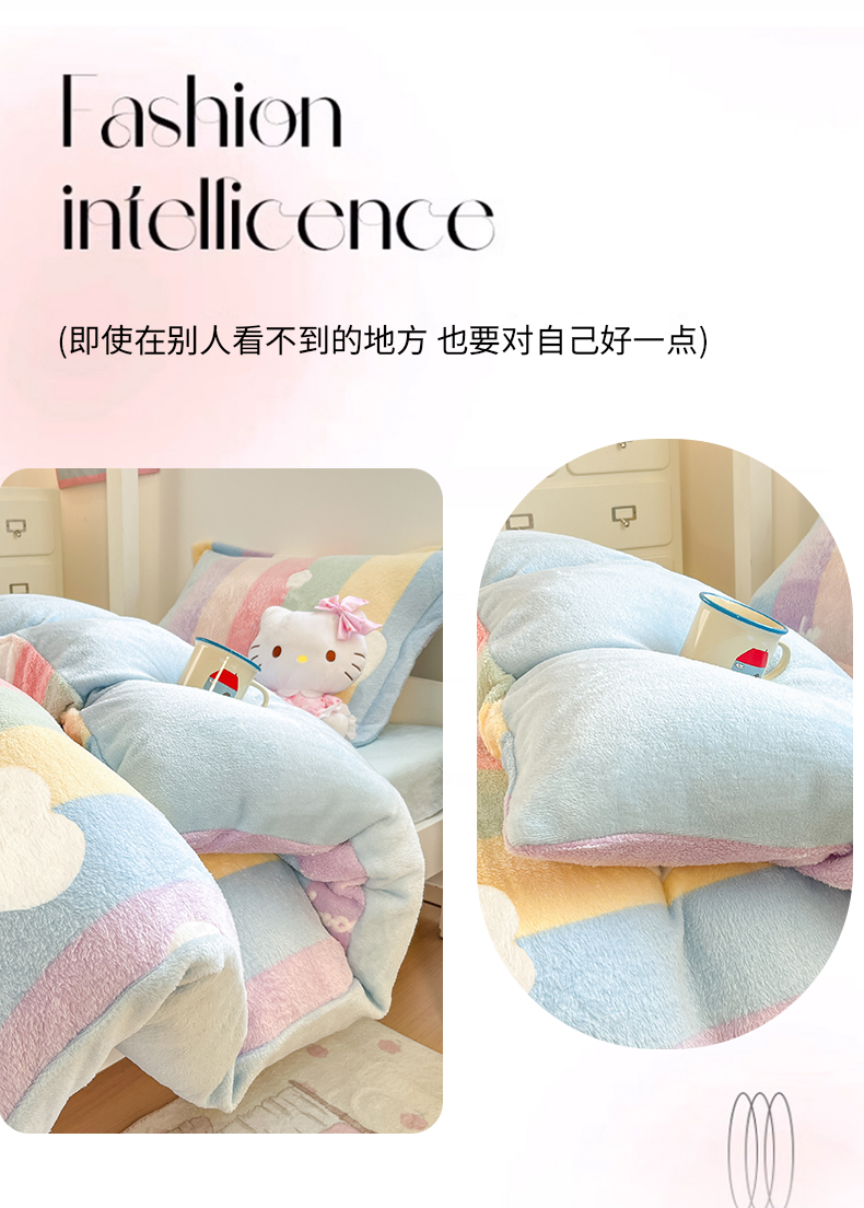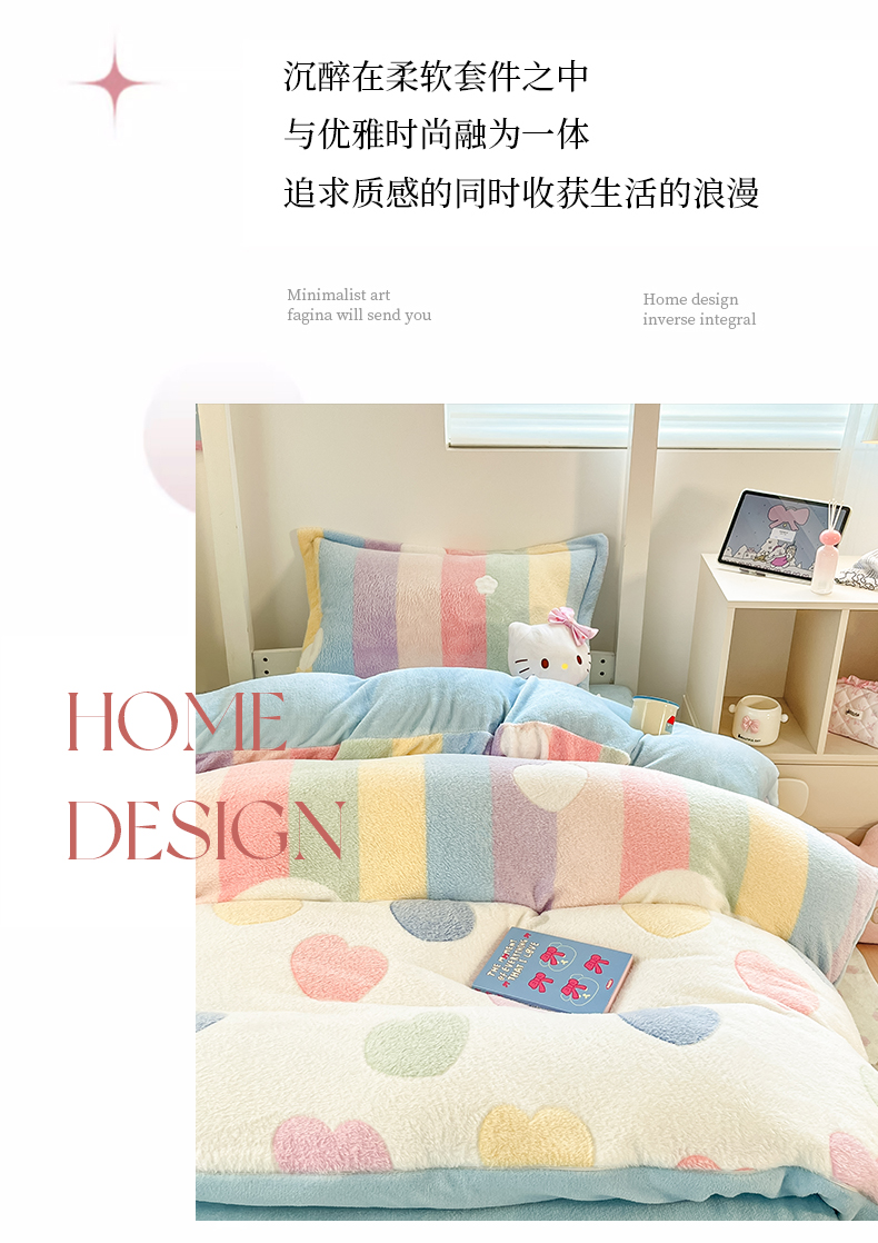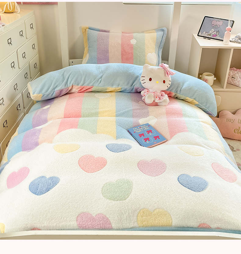 当前位置: 91家纺网 > 商品网购 > 床品套件 > 四件套 > 其它四件套 > 川悦生活 2025新款立体雪花绒印花四件套学生床系列一场景一 彩虹爱心蓝