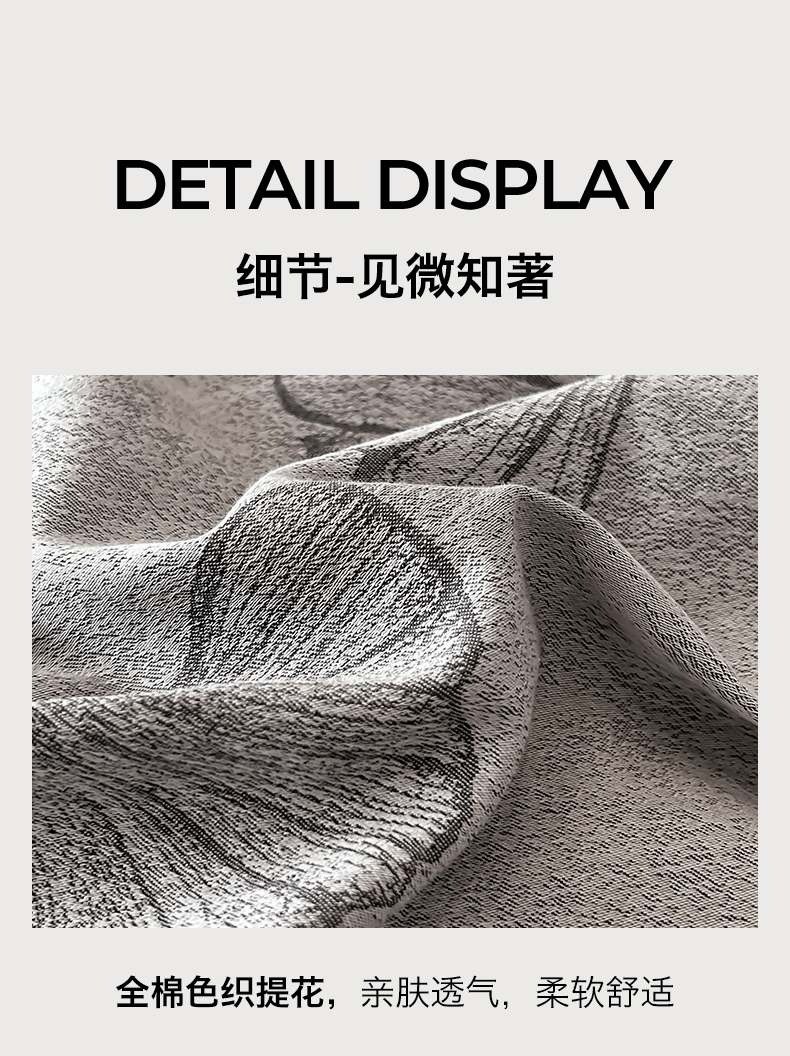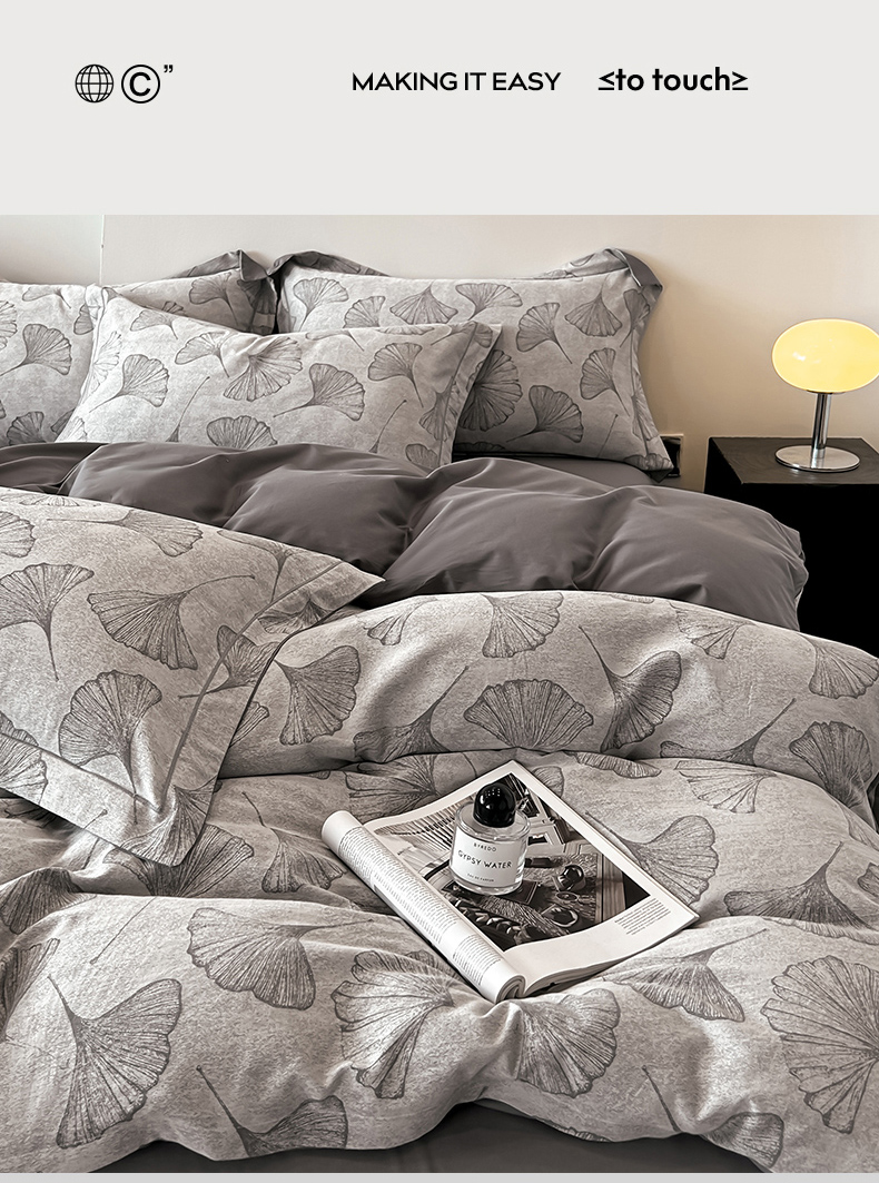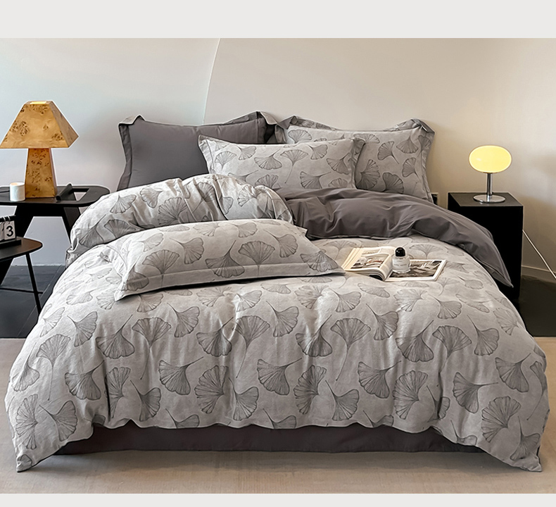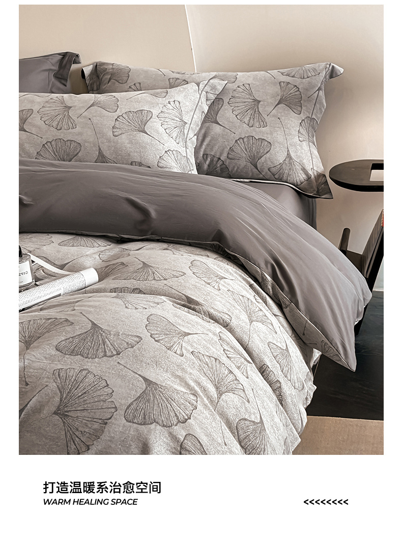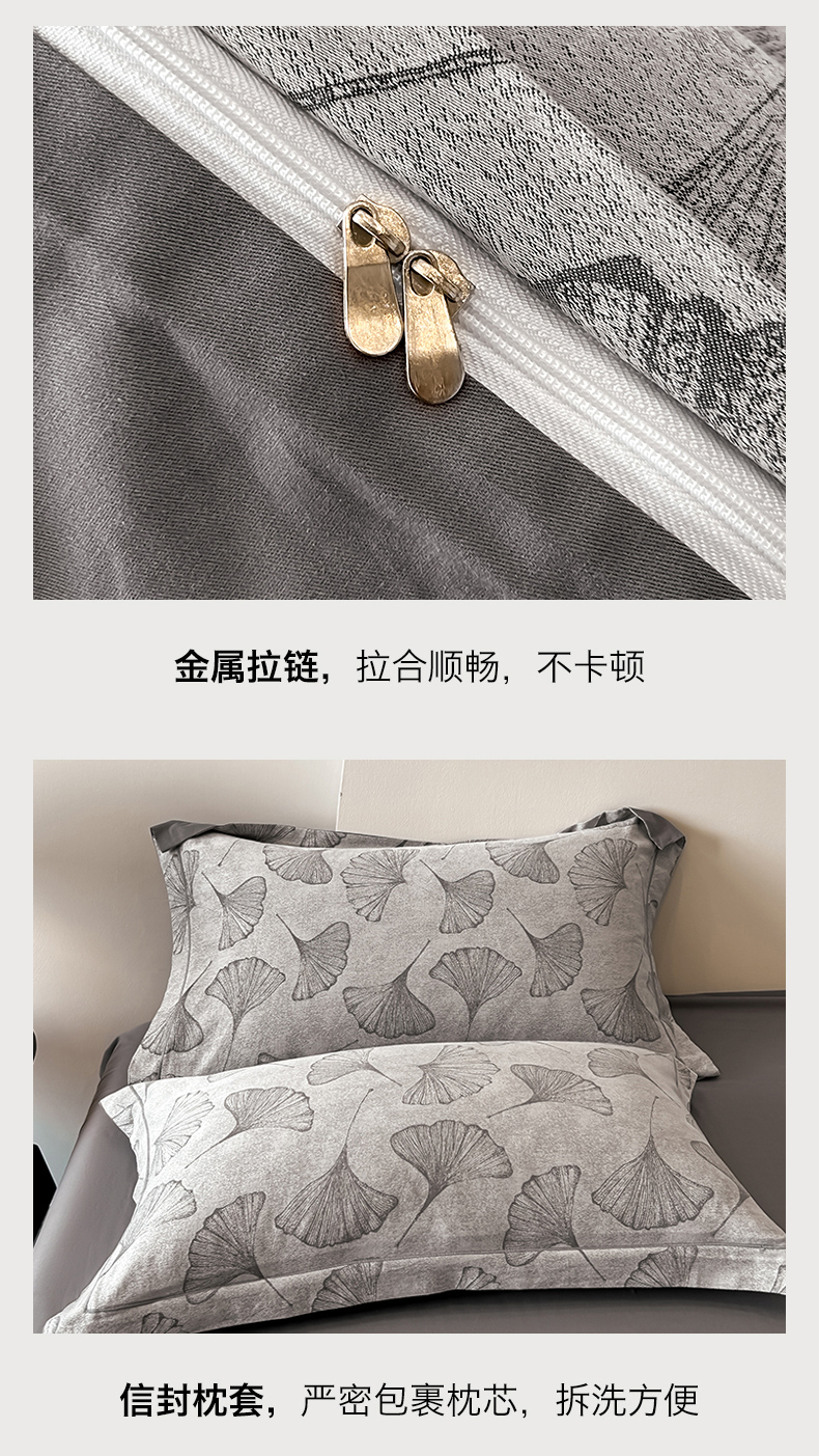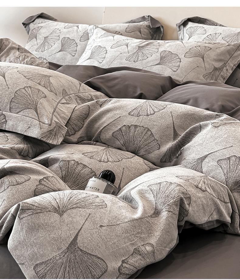 商品名称:锦彩家居 2025新款A类60支全棉色织提花四件套 银杏叶-灰色