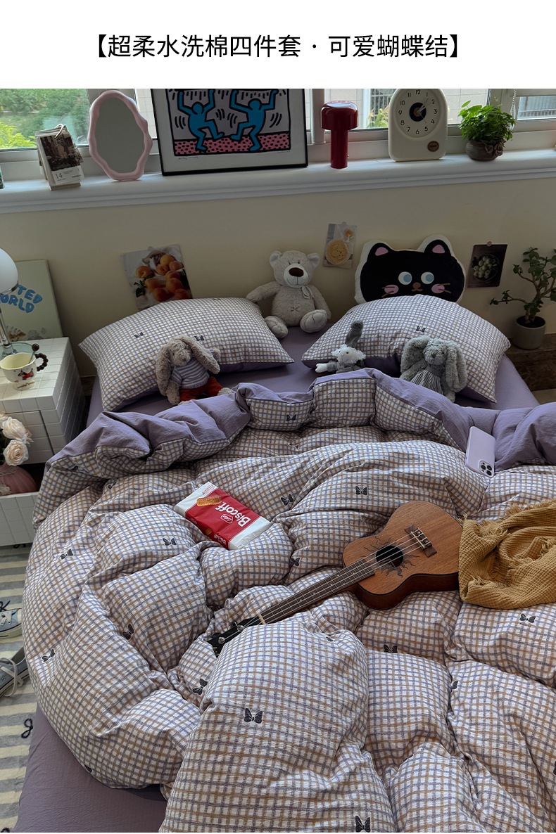 当前位置: 91家纺网 > 商品网购 > 床品套件 > 四件套 > 其它四件套 > 水墨江南 2025新款高克重云感双层纱印花四件套-场景二 可爱蝴蝶结