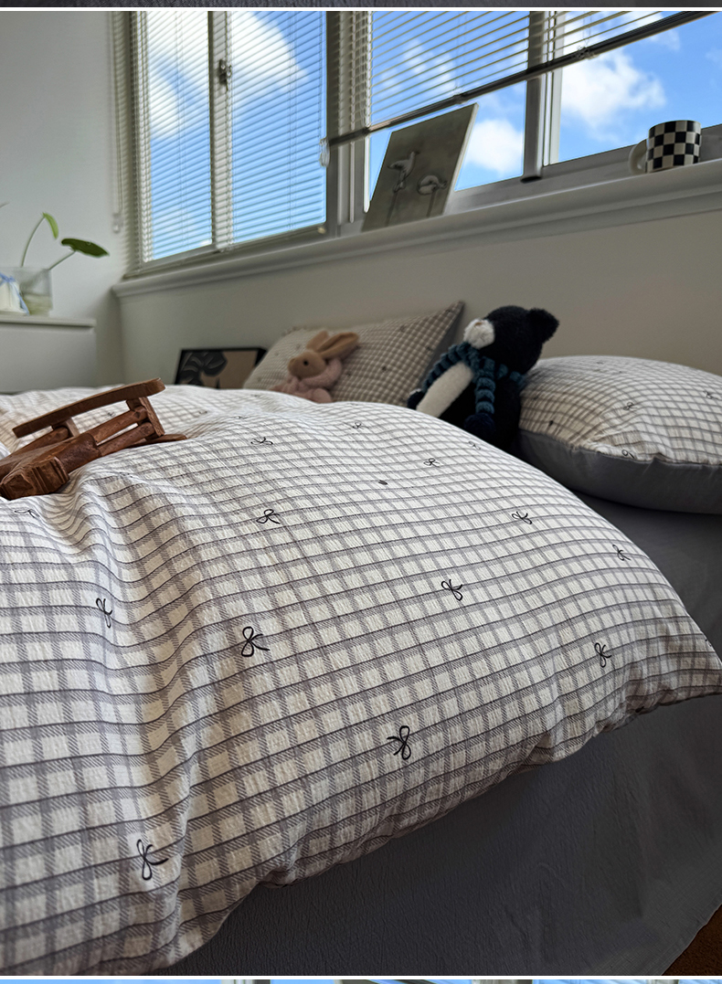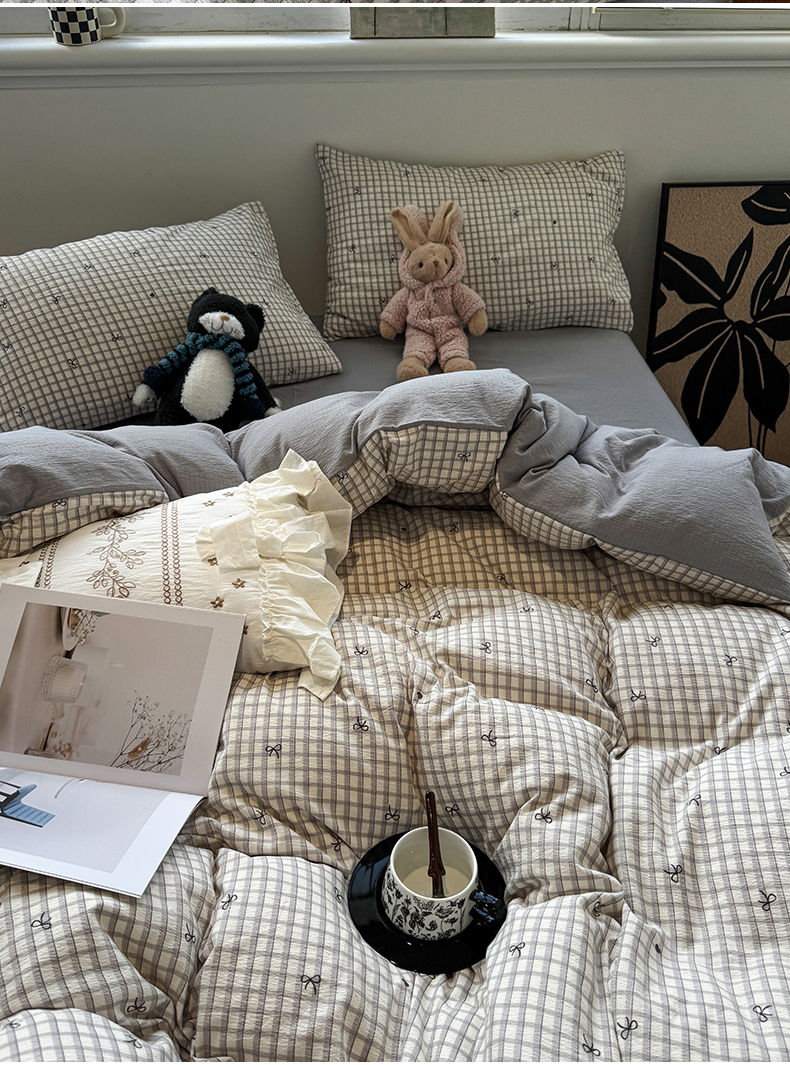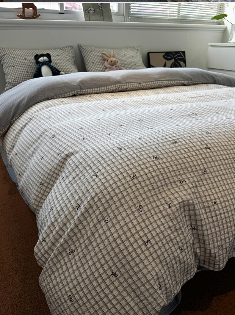 当前位置: 91家纺网 > 商品网购 > 床品套件 > 四件套 > 其它四件套 > 水墨江南 2025新款高克重云感双层纱印花四件套-场景二 小格蝴蝶结