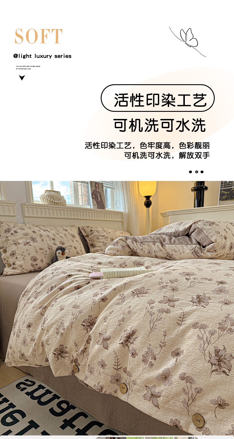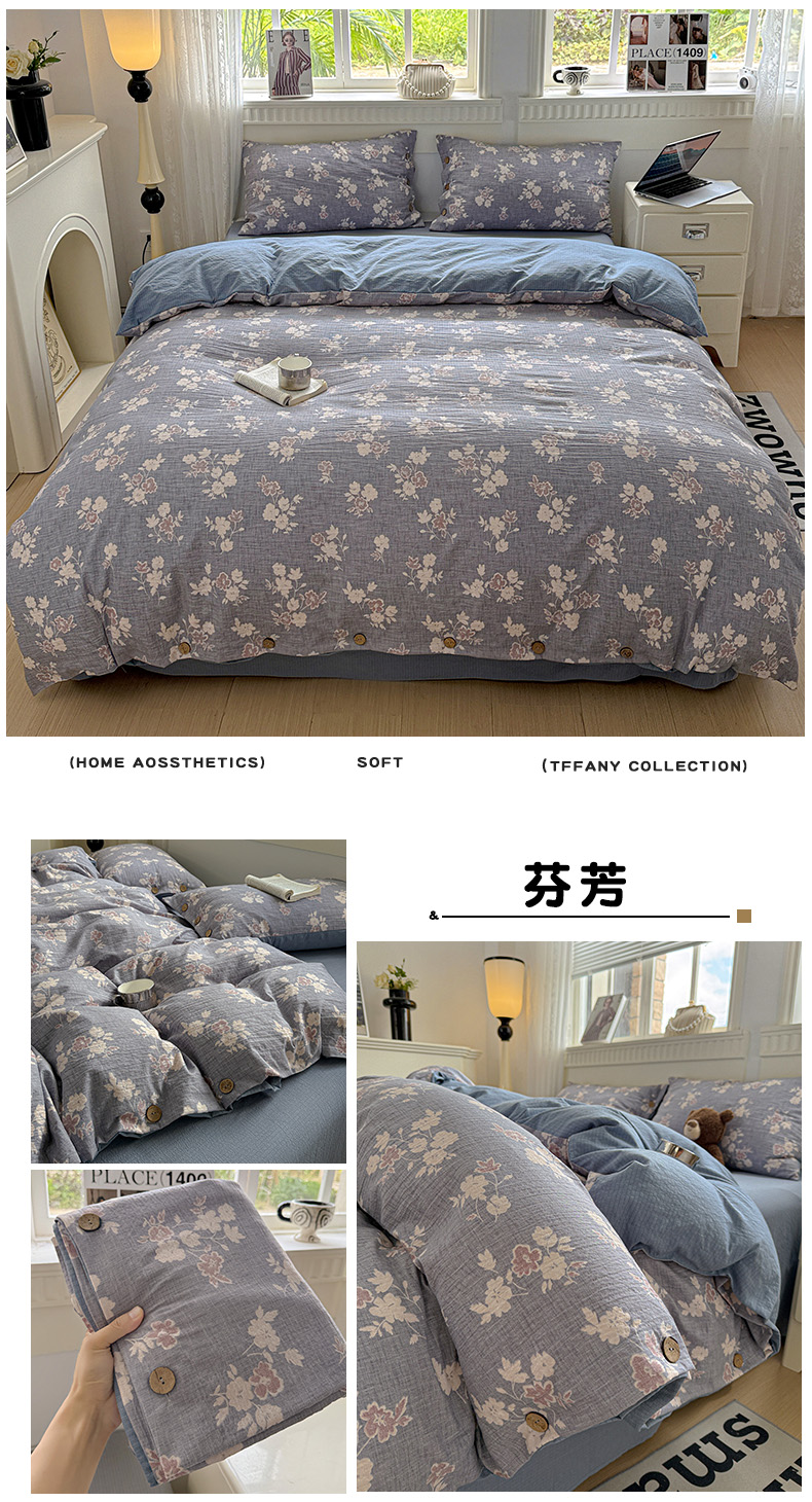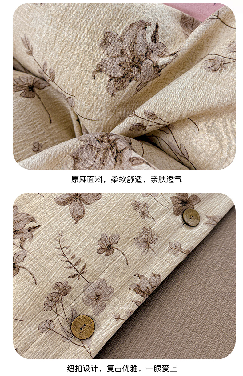 当前位置: 91家纺网 > 商品网购 > 床品套件 > 四件套 > 其它四件套 > 水墨江南 2025新款原麻复古印花纽扣款四件套 花影