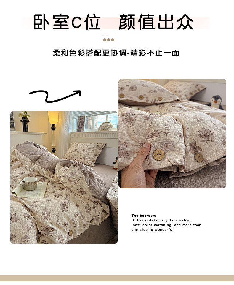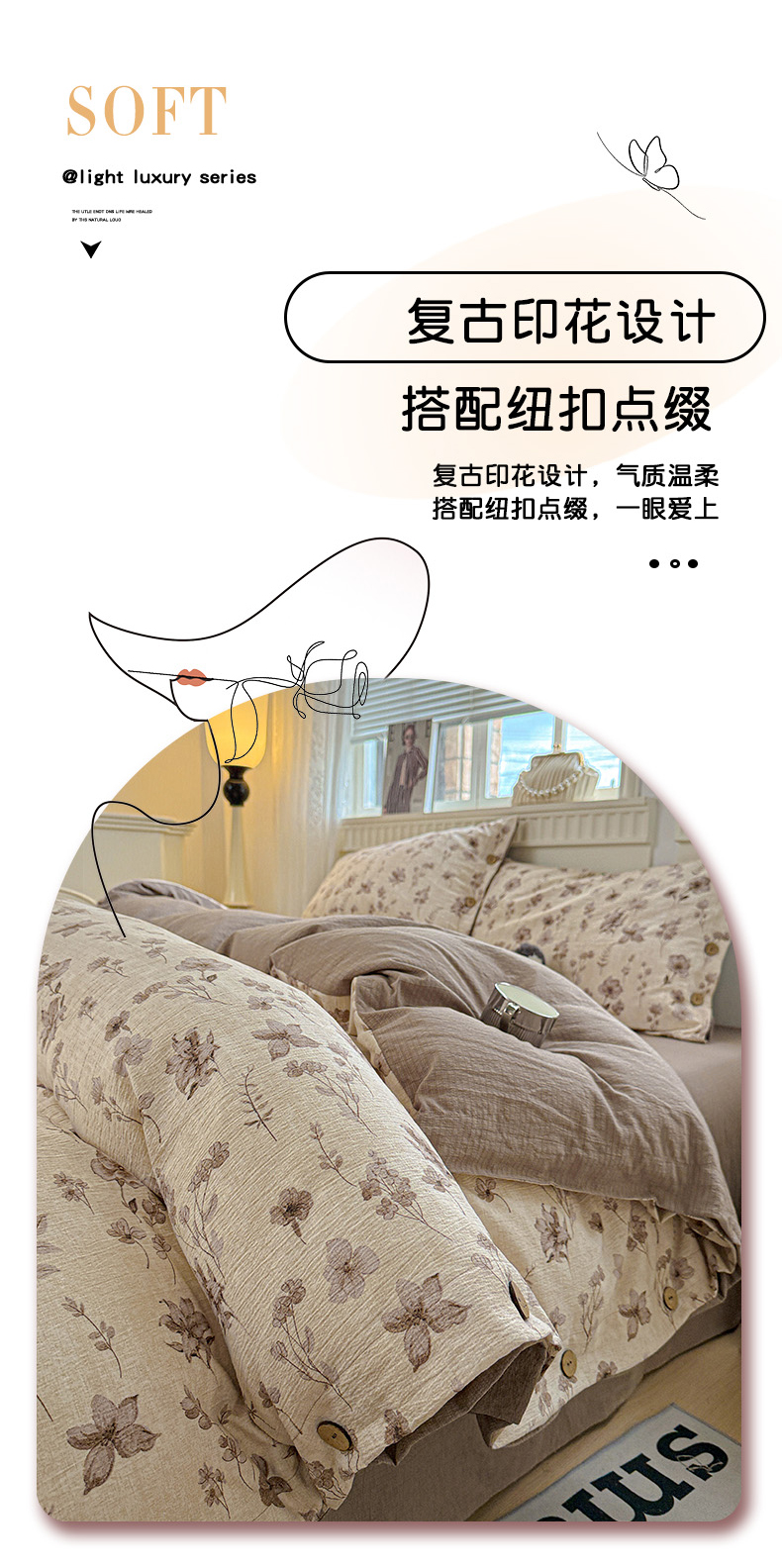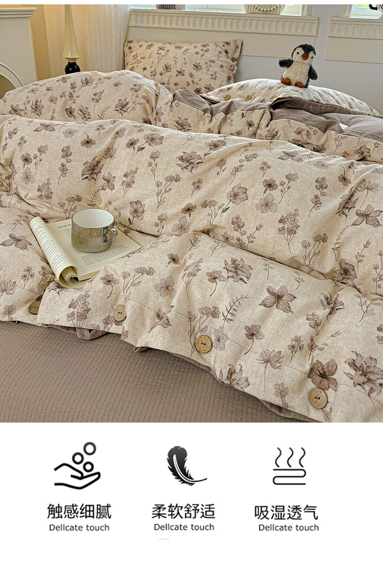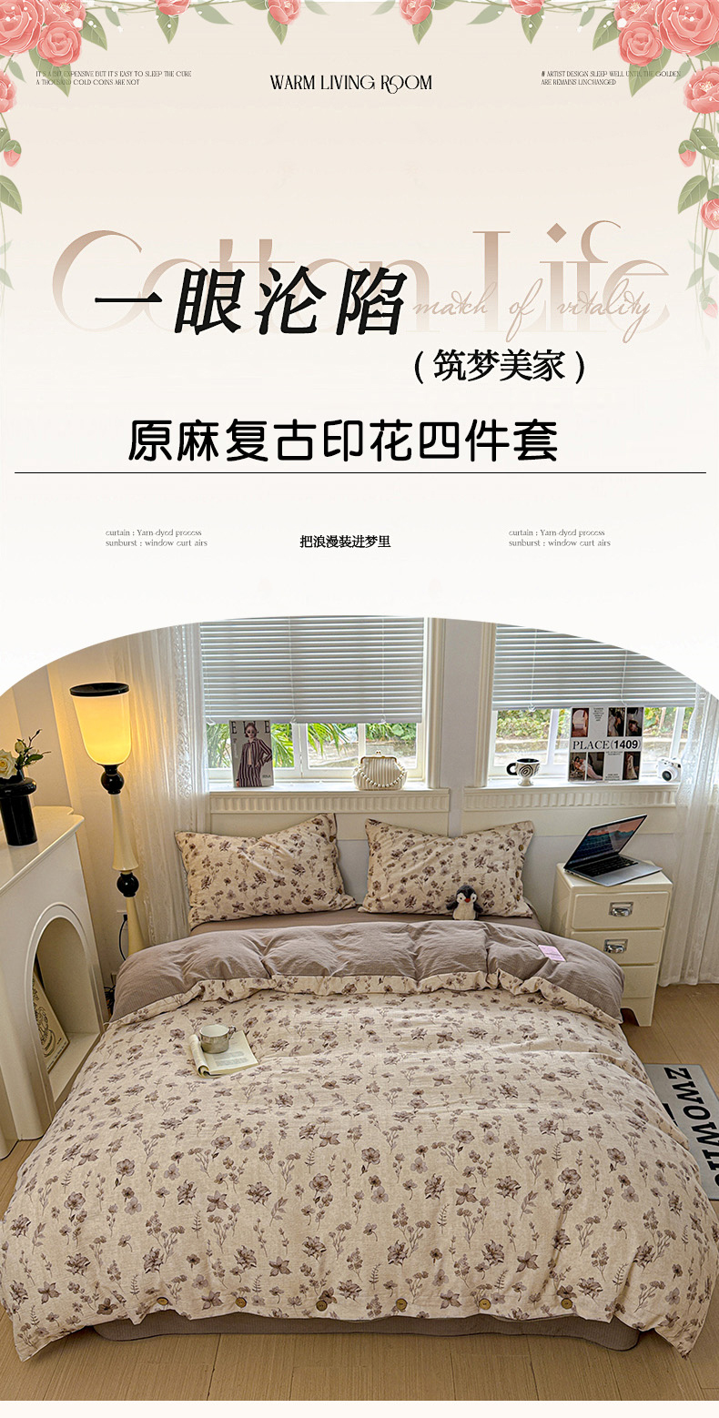 当前位置: 91家纺网 > 商品网购 > 床品套件 > 四件套 > 其它四件套 > 水墨江南 2025新款原麻复古印花纽扣款四件套 花影